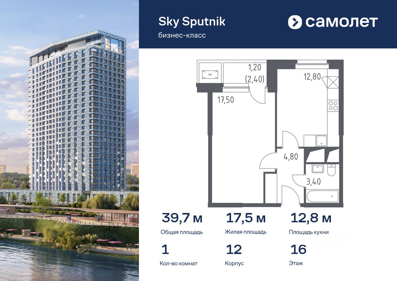 Предлагаются 1-комнатные апартаменты бизнес-класса 39,7 кв.м в корпусе 12 на 16 этаже, в Sky Sputnik Апартаменты с чистовой отделкой. Доступность дополнительных опций уточняйте у застройщика.