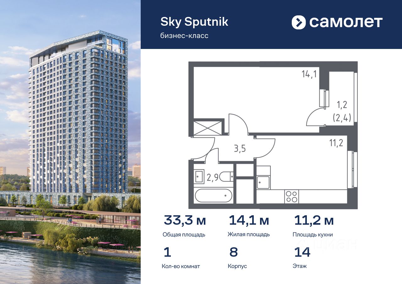 Предлагаются 1-комнатные апартаменты бизнес-класса 33,3 кв.м в корпусе 8 на 14 этаже, в Sky Sputnik Апартаменты с чистовой отделкой. Доступность дополнительных опций уточняйте у застройщика.