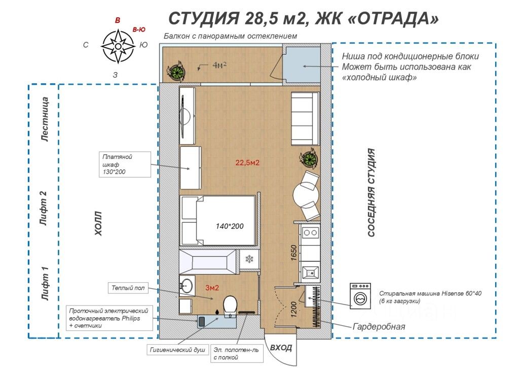 По факту 28,5 м2 + балкон 4м2 и рядом с Москвой!