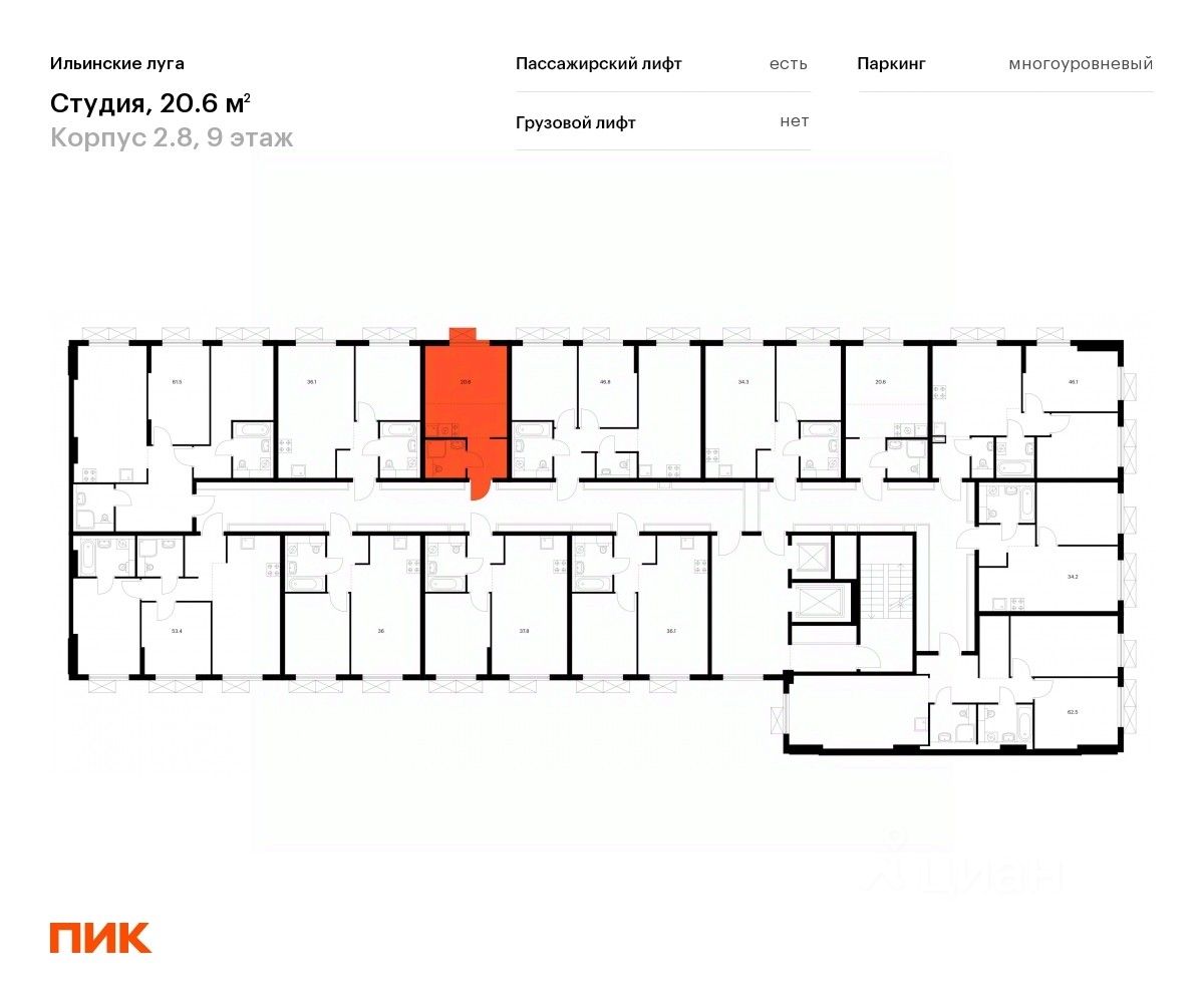 Продаётся квартира-студия площадью 20,6 кв.м на 9 этаже 9 этажного дома (Корпус 2.8, Секция 4) проекта ПИК Ильинские луга. Светлый просторный подъезд на уровне земли, функциональная планировка, большие окна, c отделкой.