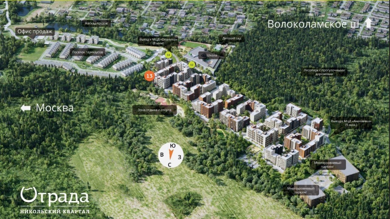 Новый Жилой комплекс комфорт-класса Никольский-Квартал Отрада в микрорайоне Опалиха, г.о. Красногорск. В ЖК будет жилых домов 14 шт. Численность расчетного населения 4290 чел.