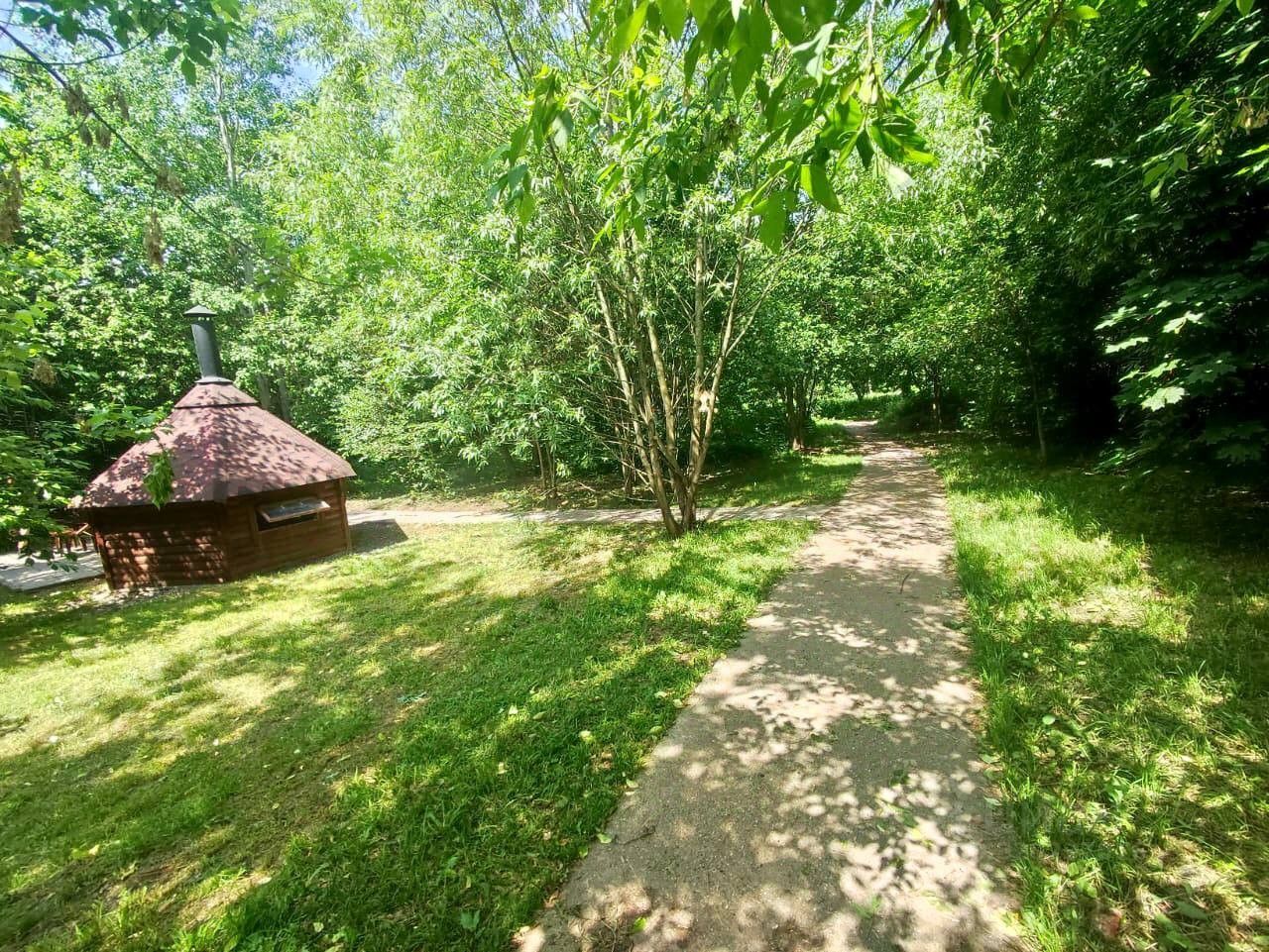 Выход из подъезда в городской парк, где множество бесплатных занятий-кружков для любого возраста, Яблоневый сквер, 10 минут до парка Губайлово и Ивановских прудов.
