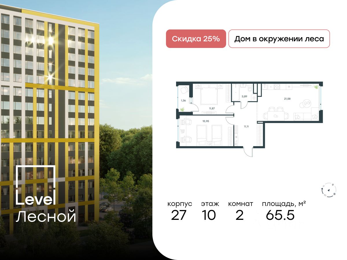 В районе, утопающем в густой зелени лесов, многочисленных парков и скверов, продаётся 2-комнатная квартира площадью 65.50 кв.м с отделкой white box. Квартира расположена на 10 этаже в жилом комплексе комфорт-класса Level Лесной (компания Level Group/Левел групп).