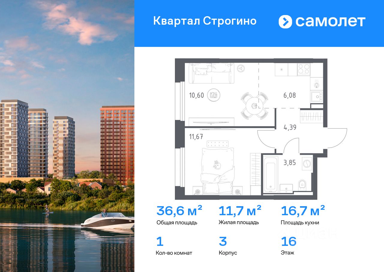 Предлагается 1-комнатная квартира комфорт-класса 36,59 кв.м в корпусе 3 на 16 этаже, в ЖК ''Квартал Строгино'' Квартира без отделки. Доступность опции ''отделка'' и возможность комплектации мебелью и декором уточняйте у застройщика.