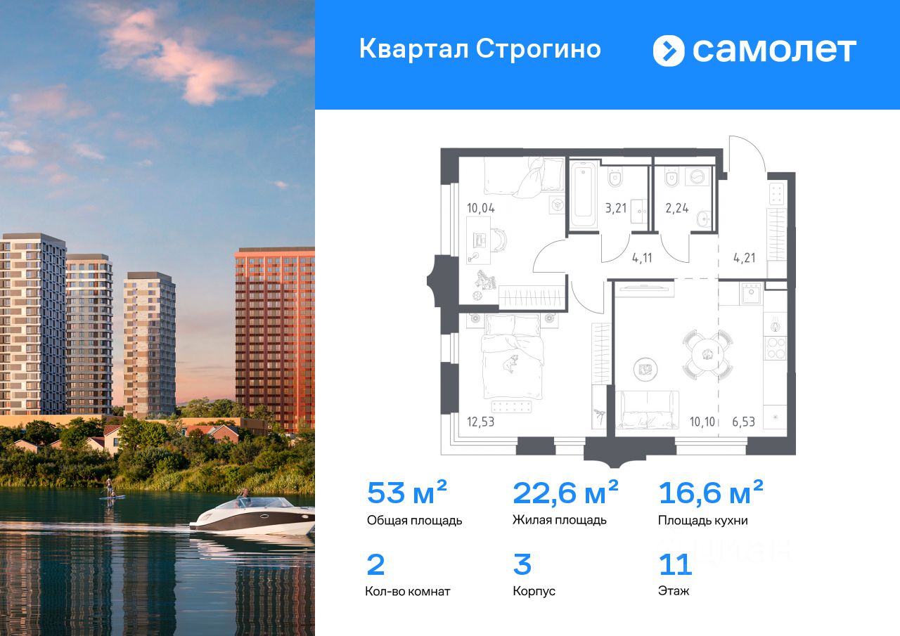 Предлагается 2-комнатная квартира комфорт-класса 52,97 кв.м в корпусе 3 на 11 этаже, в ЖК ''Квартал Строгино'' Квартира без отделки. Доступность опции ''отделка'' и возможность комплектации мебелью и декором уточняйте у застройщика.