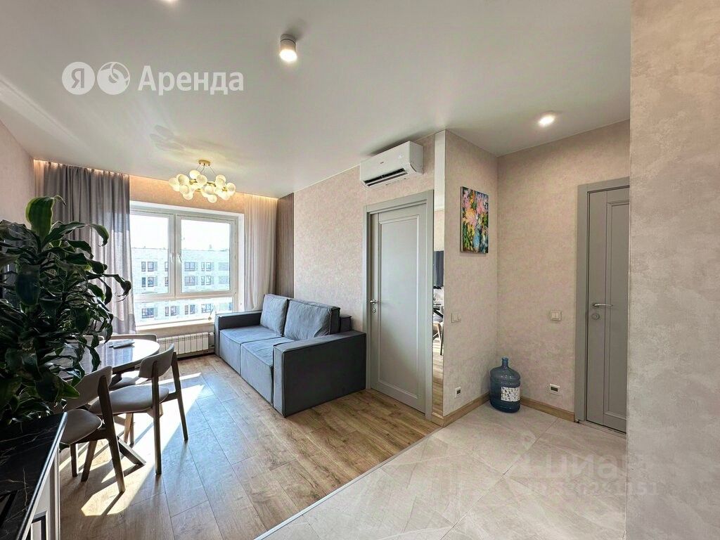 Сдаётся 1-комнатная квартира площадью 34 кв.м. с евроремонтом на 9 этаже в 9-этажном доме на срок от 11 месяцев. Из техники есть: Телевизор Духовой шкаф Стиральная машина Сушильная машина Холодильник Кондиционер Микроволновка Пылесос