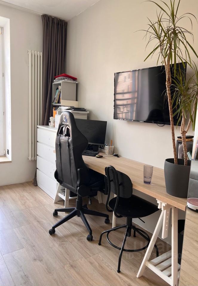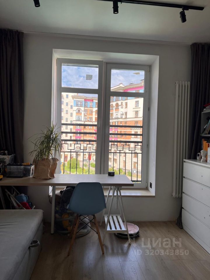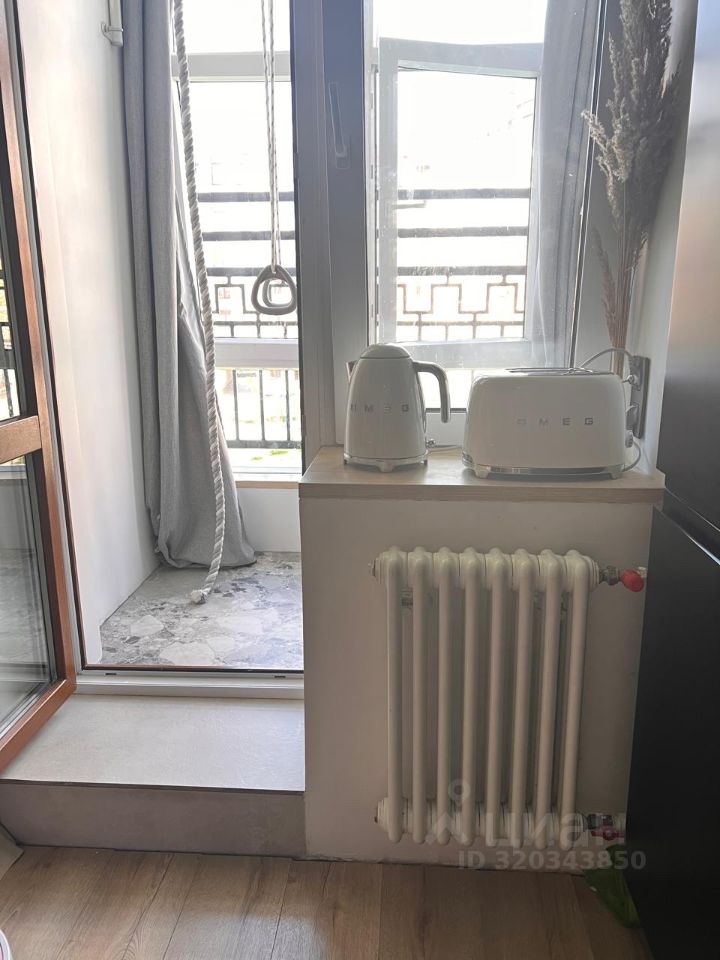 Из кухни выход на балкон с рабочим местом и с небольшой спортивной зоной. Вид открывается во внутренний двор.