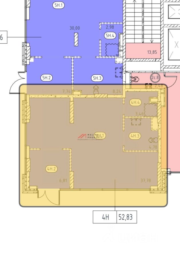 Помещение 53,83 м2, располагается на углу первого этажа 25 этажного дома, открытая планировка, отдельный вход с фасада, высота потолка 3,5 м, витринные окна по фасаду. Электрическая мощность 8 кВт. Парковка перед фасадом. Место для размещения рекламы.