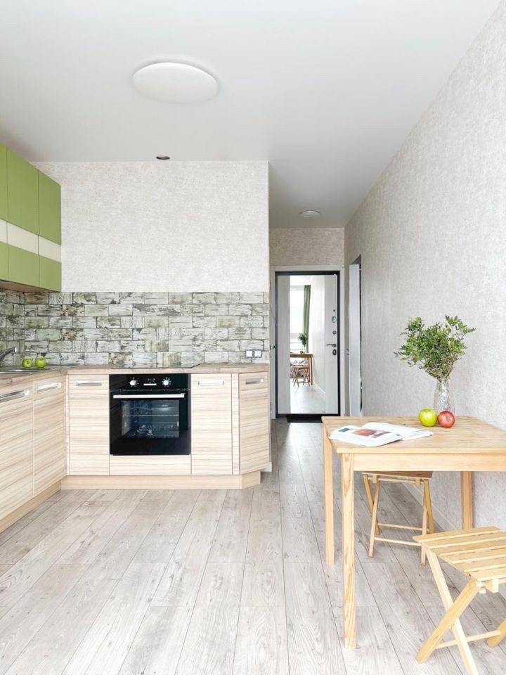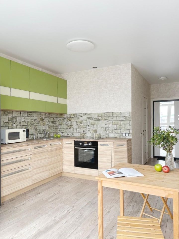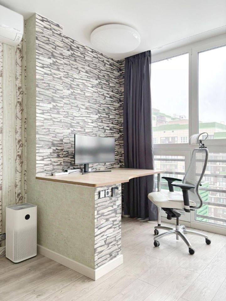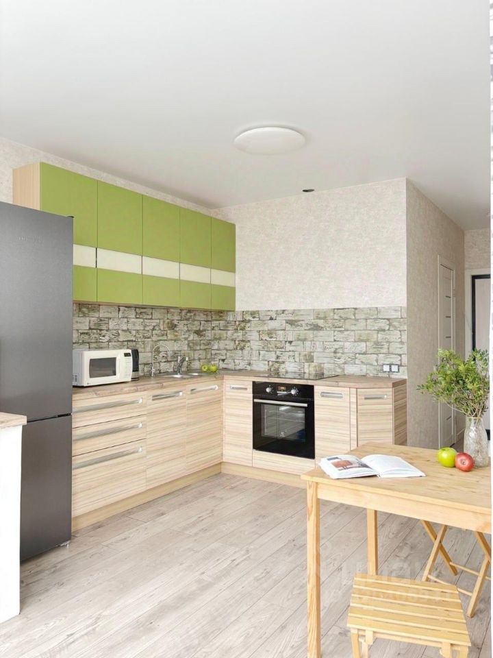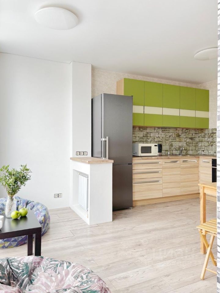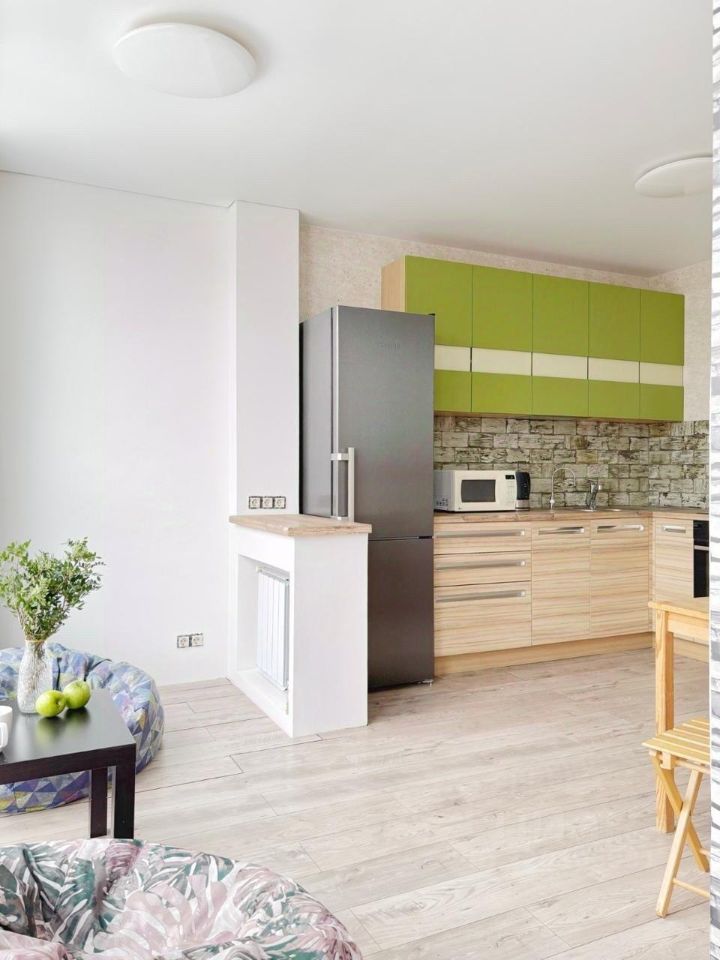 В квартире выполнен качественный ремонт. Все необходимое для комфортного проживания уже есть: современная мебель в комнате и на кухне, а также вся необходимая техника — кондиционер, холодильник и стиральная машина.