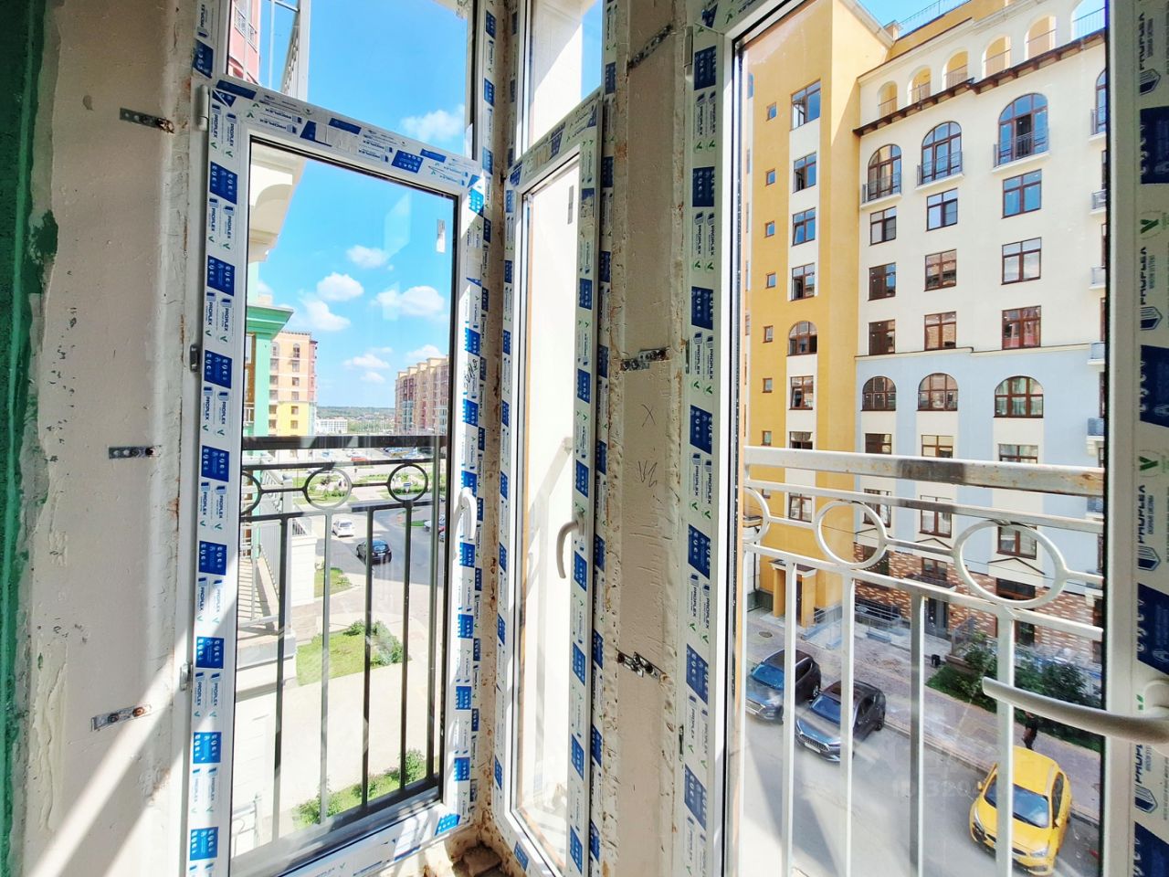 Самая большая квартира в комплексе - общая площадь с учетом лоджии почти 100 кв.м. Распашонка - окна на две стороны. Панорамное остекление лоджии. Свободная планировка позволяет организовать просторную кухню-гостиную 27 кв.м. с двумя окнами и выходом на лоджию. Два санузла. Гардеробная. Уникальность квартиры в том, что ее, при желании, можно разделить на две отдельных квартиры.