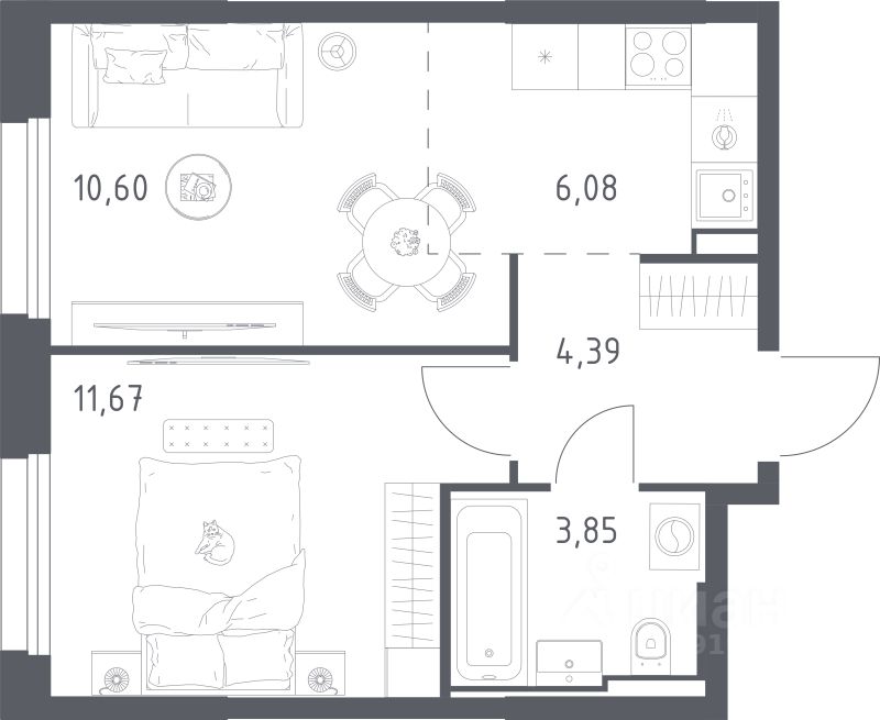 Общая площадь36,59 м2