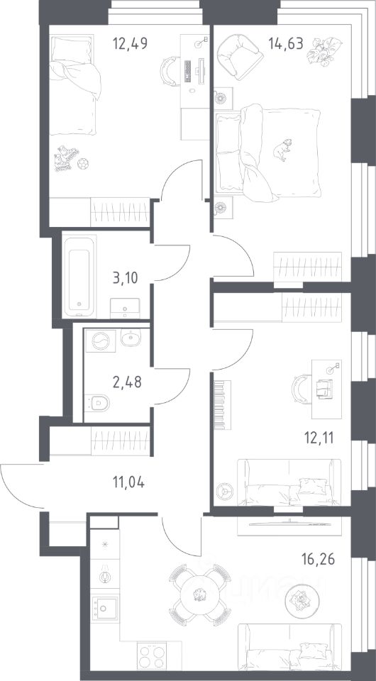 Продаётся 3-комнатная квартира в строящемся доме (Корпус 2), срок сдачи: II-кв. 2026, общей площадью 72.11 кв.м., на 14 этаже. Новый современный жилой комплекс на северо-западе Москвы. Рядом с проектом благоустроенная набережная Живописной бухты, парк Липовая Роща и Строгинский затон. До станций метро ''Строгино'' и ''Мякинино'' можно добраться за 10 минут на автомобиле. На территории будет вся необходимая инфраструктура для комфортного проживания: коммерческие помещения на первых этажах, собственные детские сады и школа, спортивные и детские площадки с продуманным озеленением, зоны тихого отдыха, пешеходный бульвар и велодорожки. Можно не беспокоиться за безопасность детей - дворы закрыты от машин, на территорию может заехать только спецтранспорт.