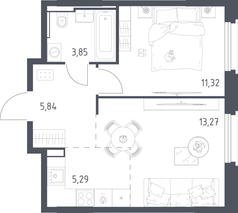 Общая площадь39,57 м2
