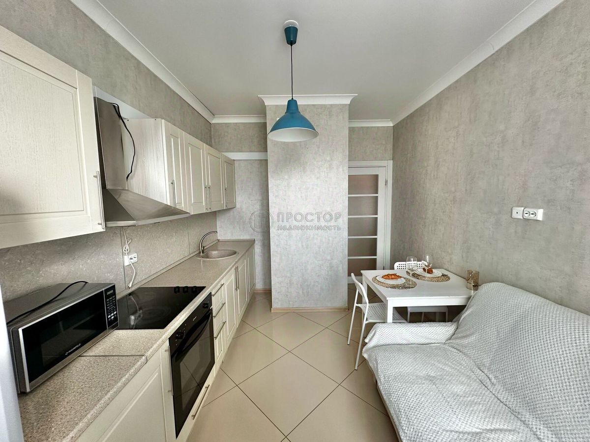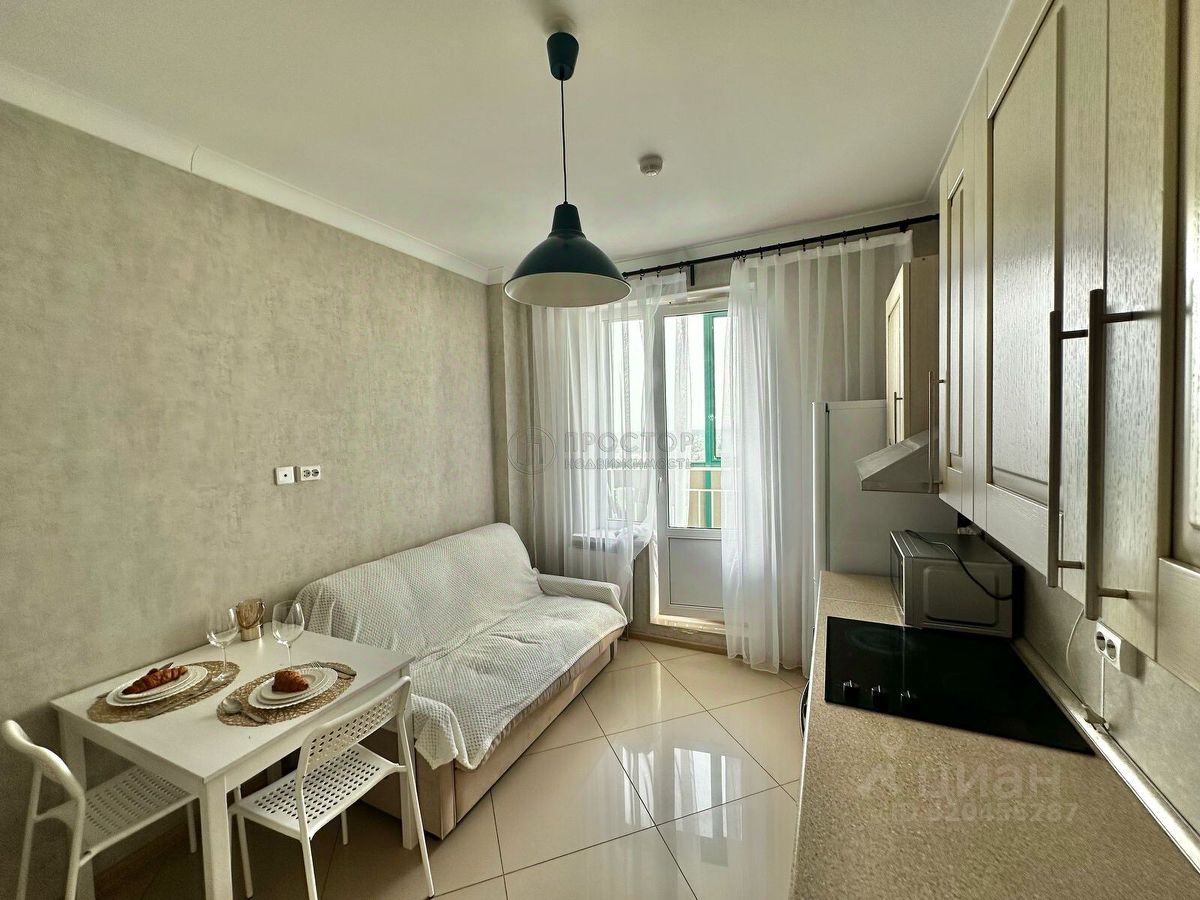 Квартира расположена на 18-м этаже 24-этажного дома и обладает отличной планировкой: общая площадь составляет 38,5 кв. м, жилая — 20 кв. м, площадь кухни — 9 кв. м. В квартире сделан евроремонт, есть балкон. Окна выходят во двор.