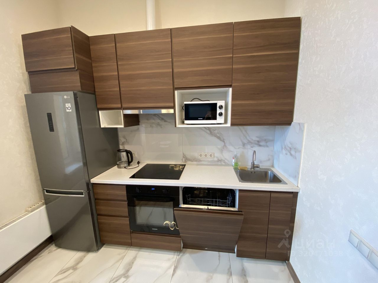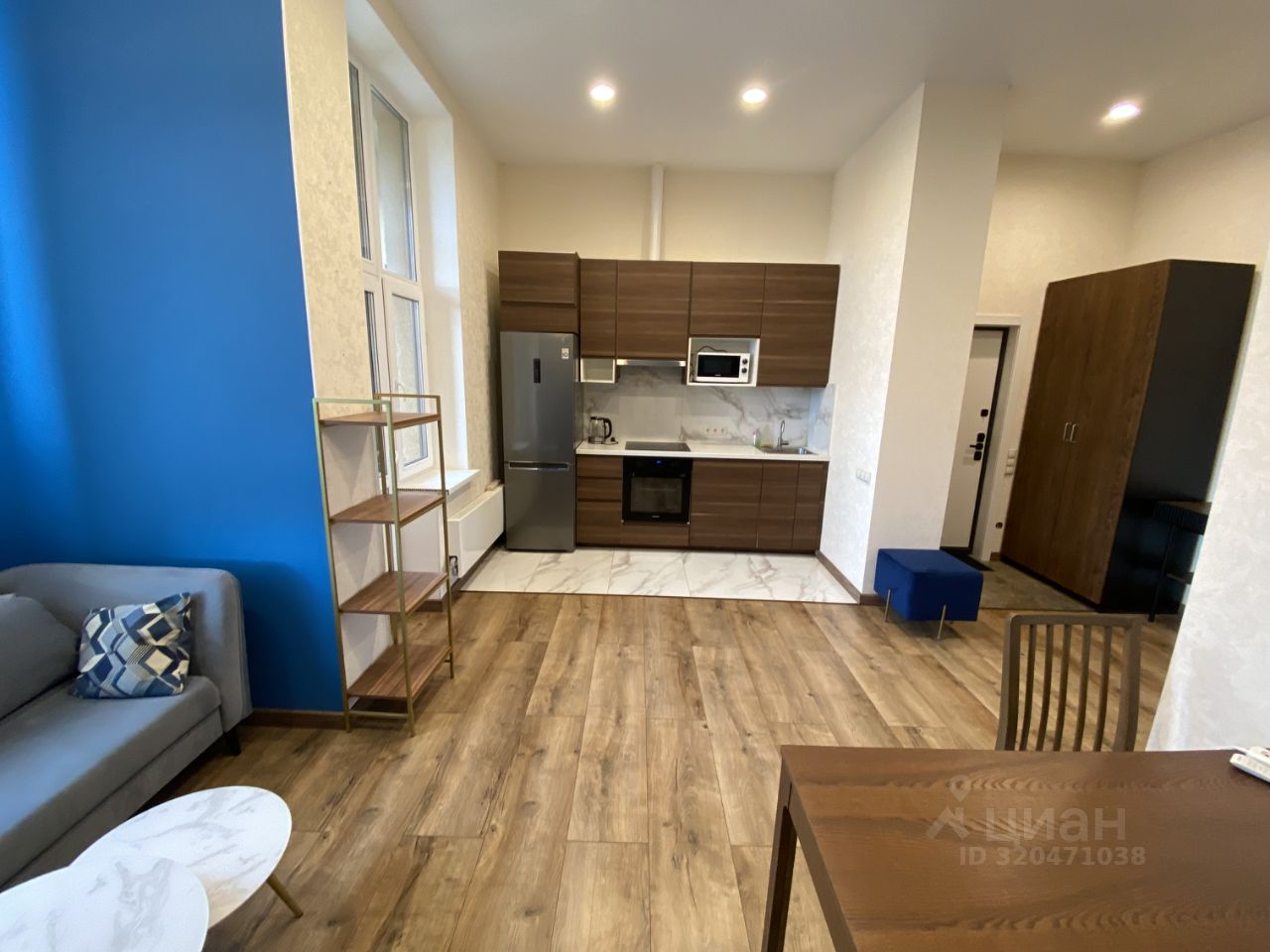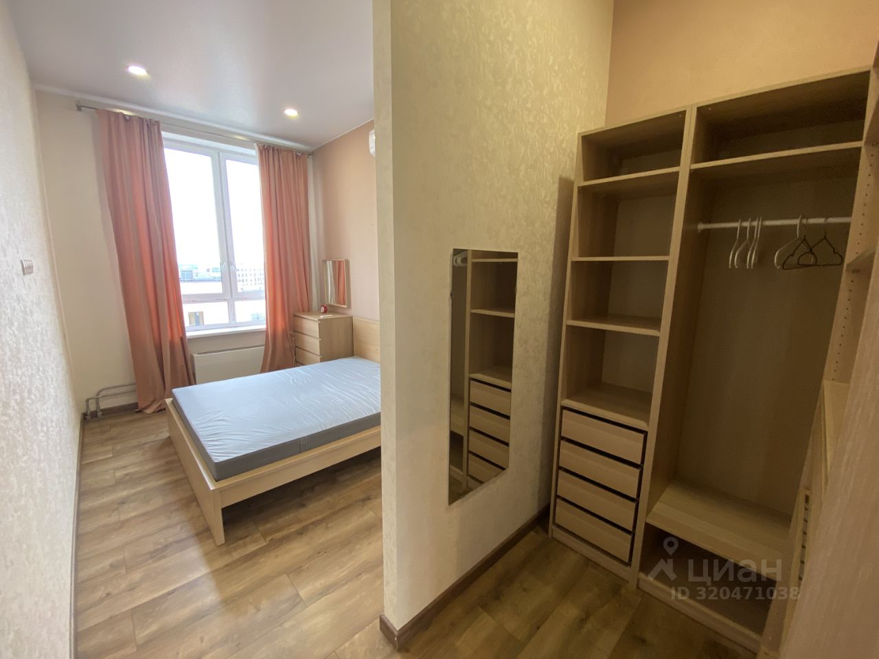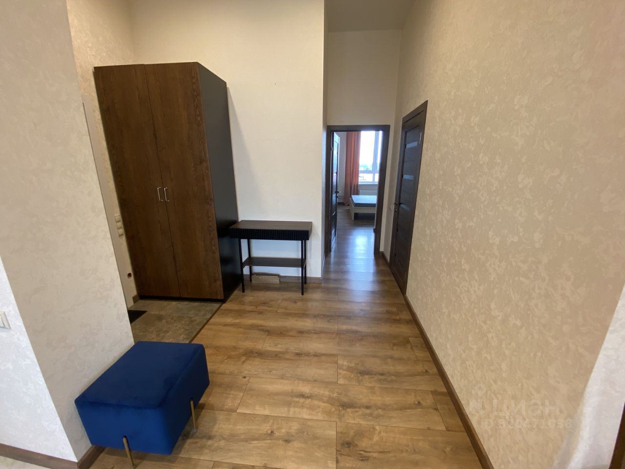 В спальне есть гардеробная комната. Кухня соединена с гостиной , в которой удобный диван с большим телевизором.