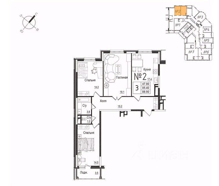 Продаётся 3-комнатная квартира в сданном доме (Новикова, 20/1 (Секция 3)), срок сдачи: III-кв. 2024, общей площадью 89.4 кв.м., на 5 этаже. Жилой комплекс ''Школьный'' - современный комплекс комфорт-класса в одном из самых комфортных районов города Наро-Фоминска. Из окон на верхних открываются потрясающие панорамные виды на реку Нара и зеленые массивы.