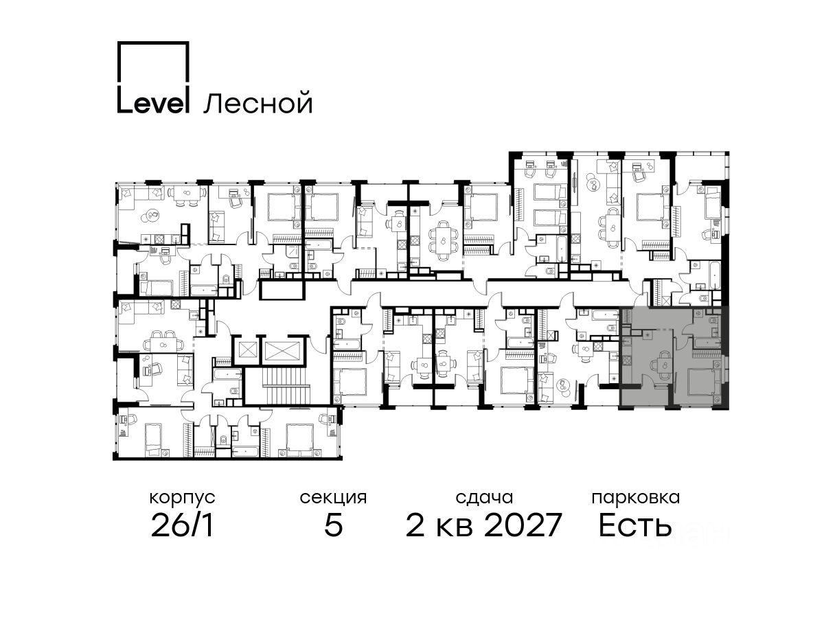 В районе, утопающем в густой зелени лесов, многочисленных парков и скверов, продаётся 1-комнатная квартира площадью 32.70 кв.м с отделкой white box. Квартира расположена на 14 этаже в жилом комплексе комфорт-класса Level Лесной (компания Level Group/Левел групп).