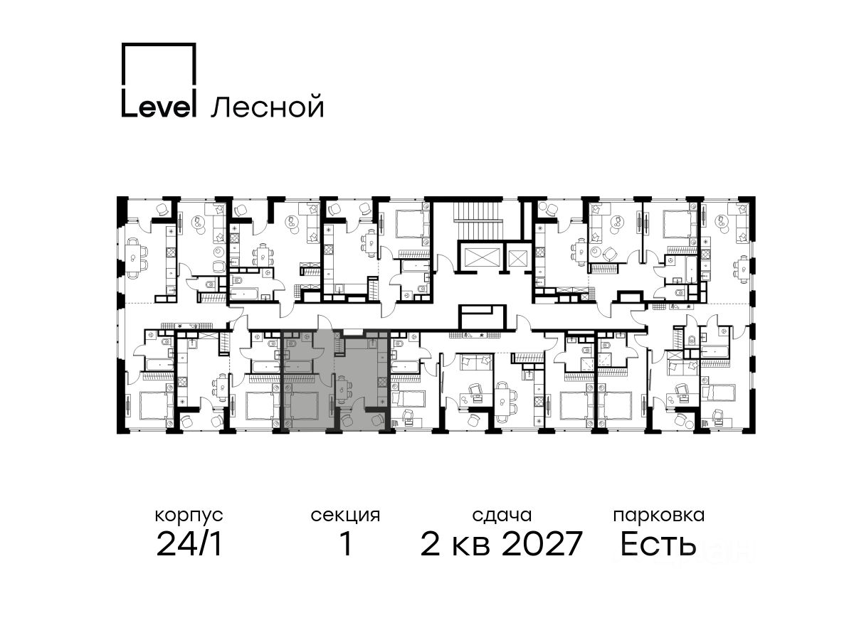 продам 1-к, Левел Лесной ЖК, 24/18 534 792 ₽