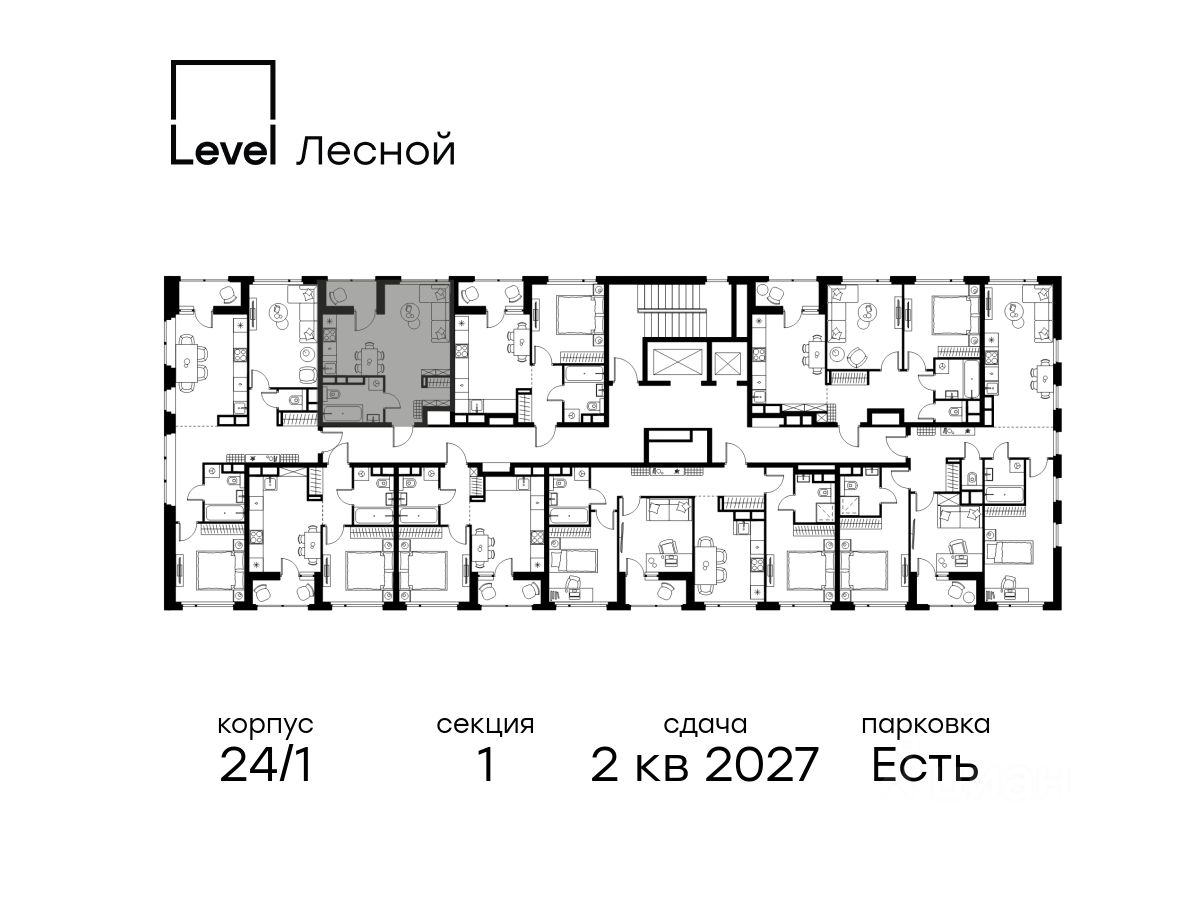продам 1-к, Левел Лесной ЖК, 24/16 908 439 ₽