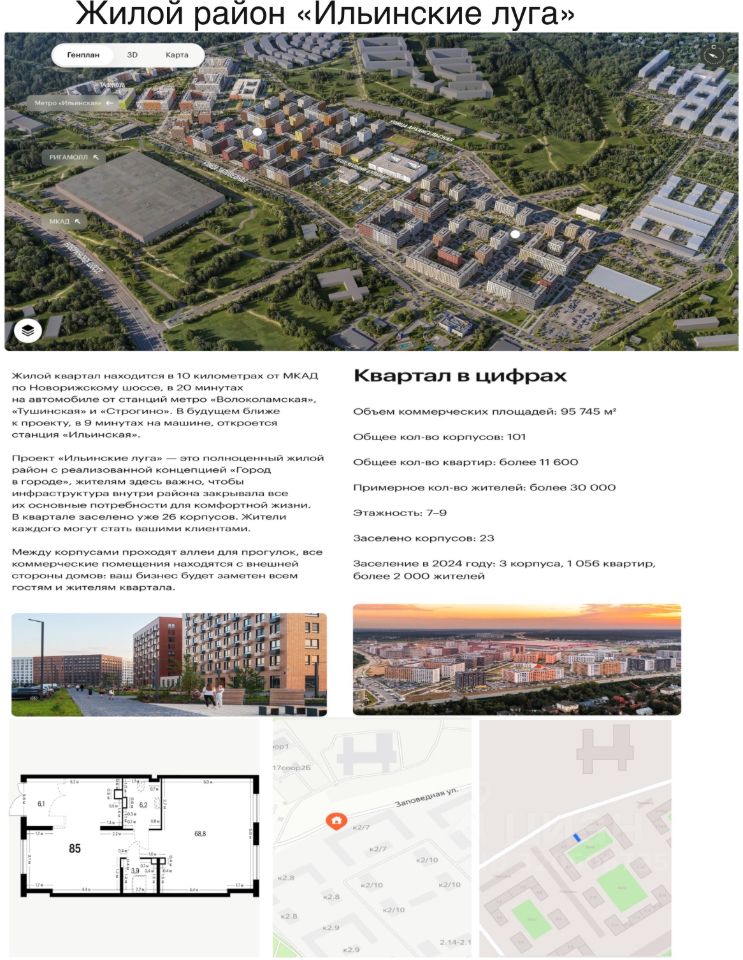 Сдается в аренду торгового помещения 85 м2 на первой линии жилого комплекса Ильинские луга (20 минут на автомобиле от метро Строгино). 1-я линия домов выход на проезжую часть и бульвар. улица Заповедная 22.
