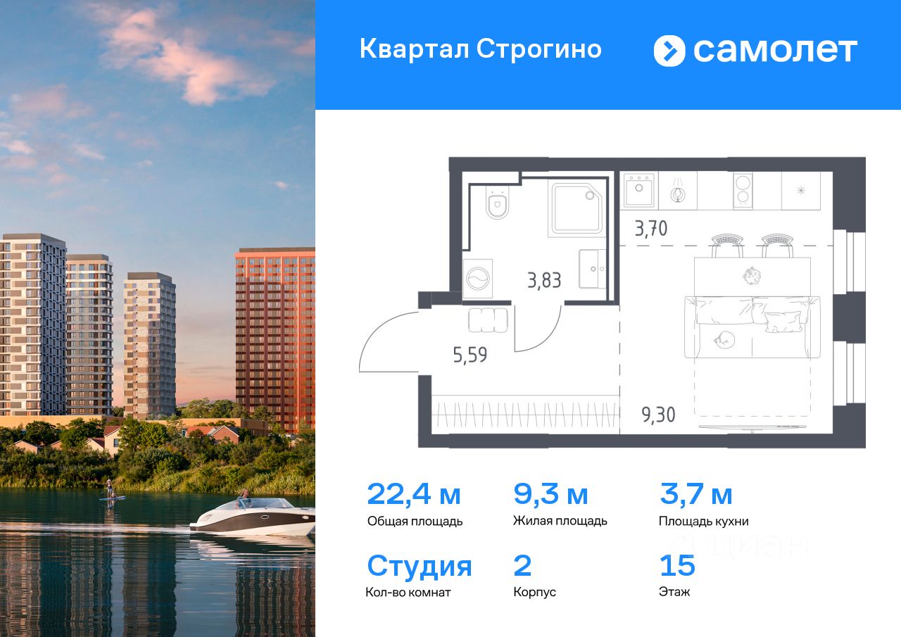 Предлагается квартира студия комфорт-класса 22,42 кв.м в корпусе 2 на 15 этаже, в ЖК ''Квартал Строгино'' Квартира с чистовой отделкой. Доступность дополнительных опций уточняйте у застройщика.