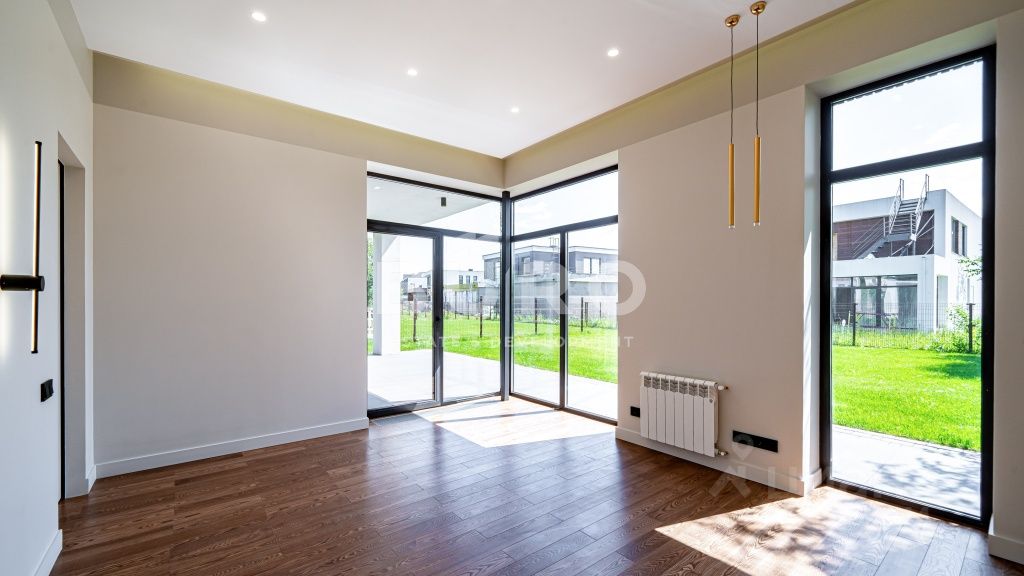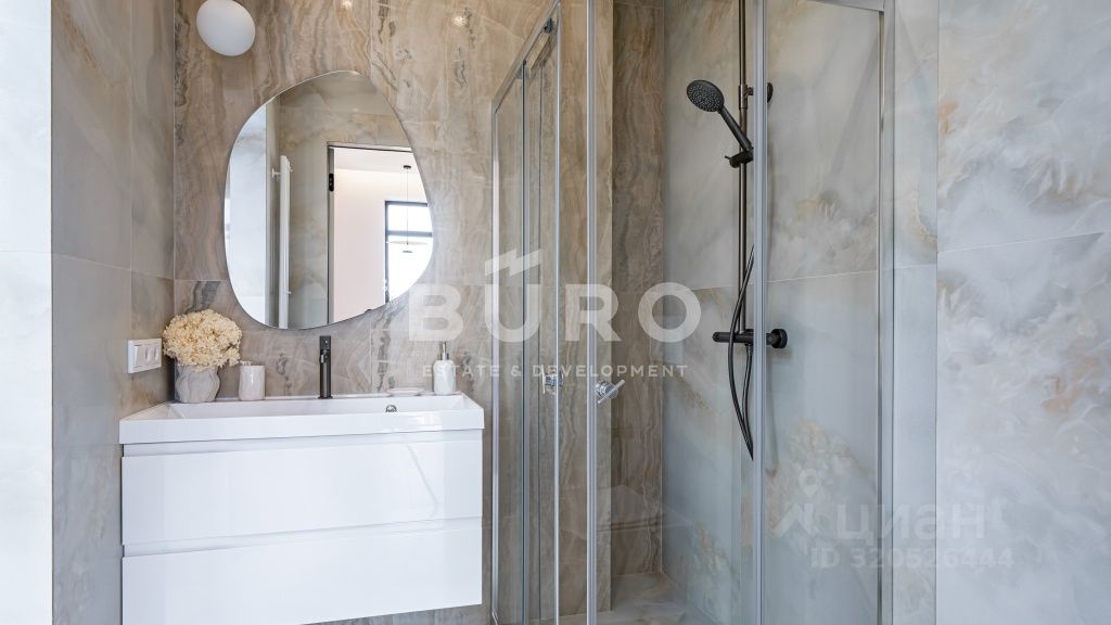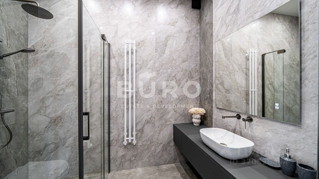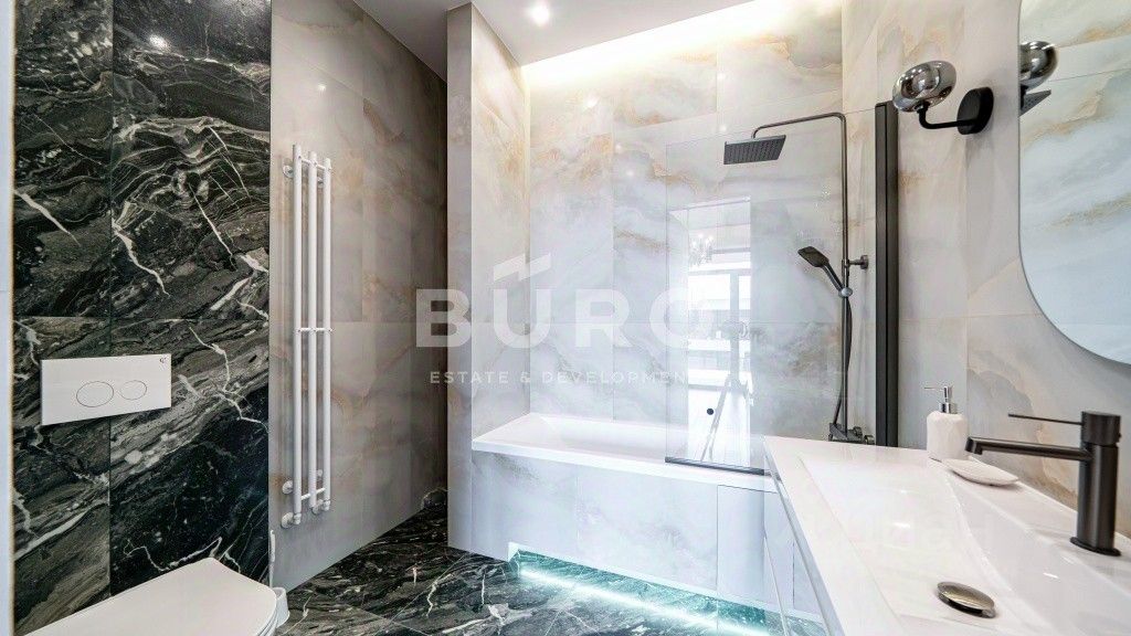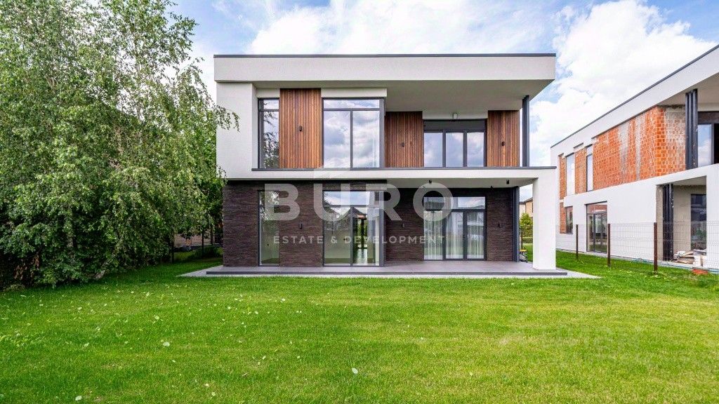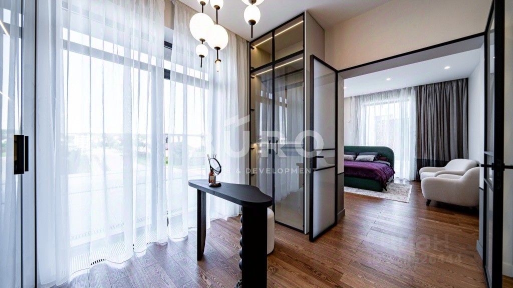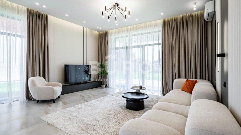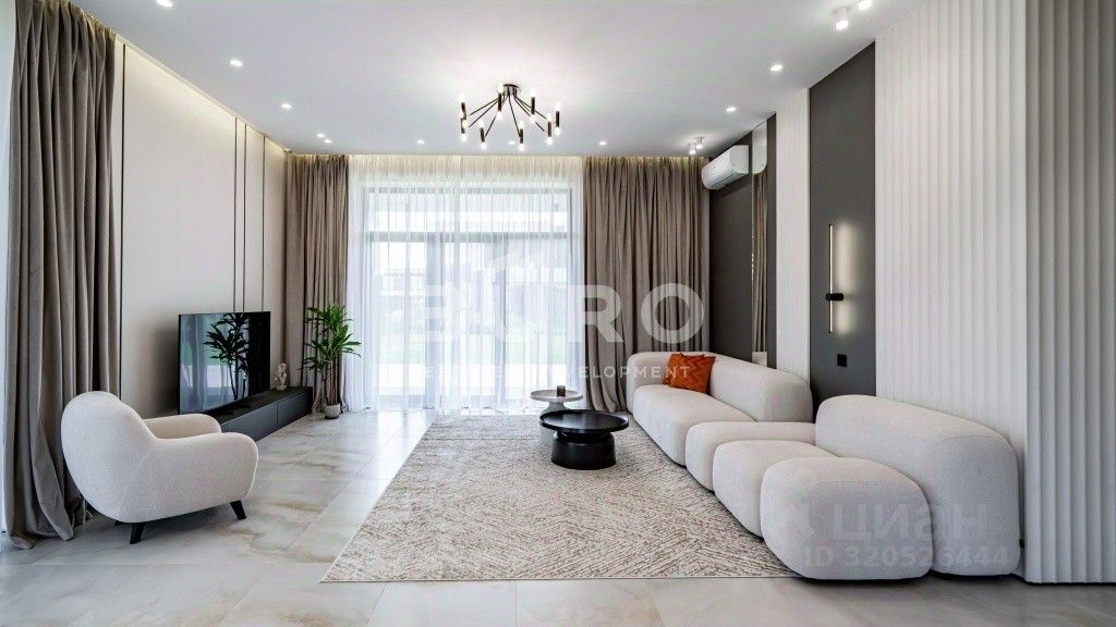 Монолитные перекрытия и фундамент гарантируют прочность и долговечность конструкции здания. На плоской кровле уложена надежная мембрана. В доме выполнен дизайнерский ремонт с применением премиальных отделочных материалов. Современный интерьер укомплектован стильной мебелью и элементами декора. Эффектная лестница на второй этаж с подсветкой и стеклянными перилами гармонично дополняет оформление.