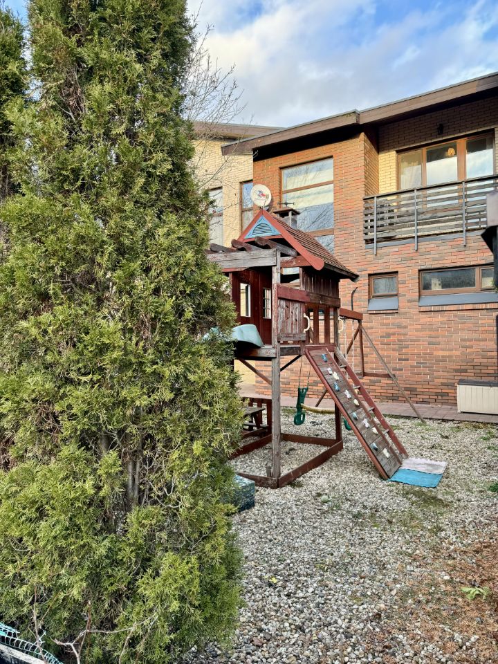 Наш таунхаус- это уникальное предложение среди аналогов: площадь участка вдвое больше, чем у других предложений - 4.1 сотки. За счет большой площади участка на территории внутреннего двора расположилась просторная веранда, скрытая от посторонних глаз деревьями. Идеальное место для времяпрепровождения в кругу семьи.