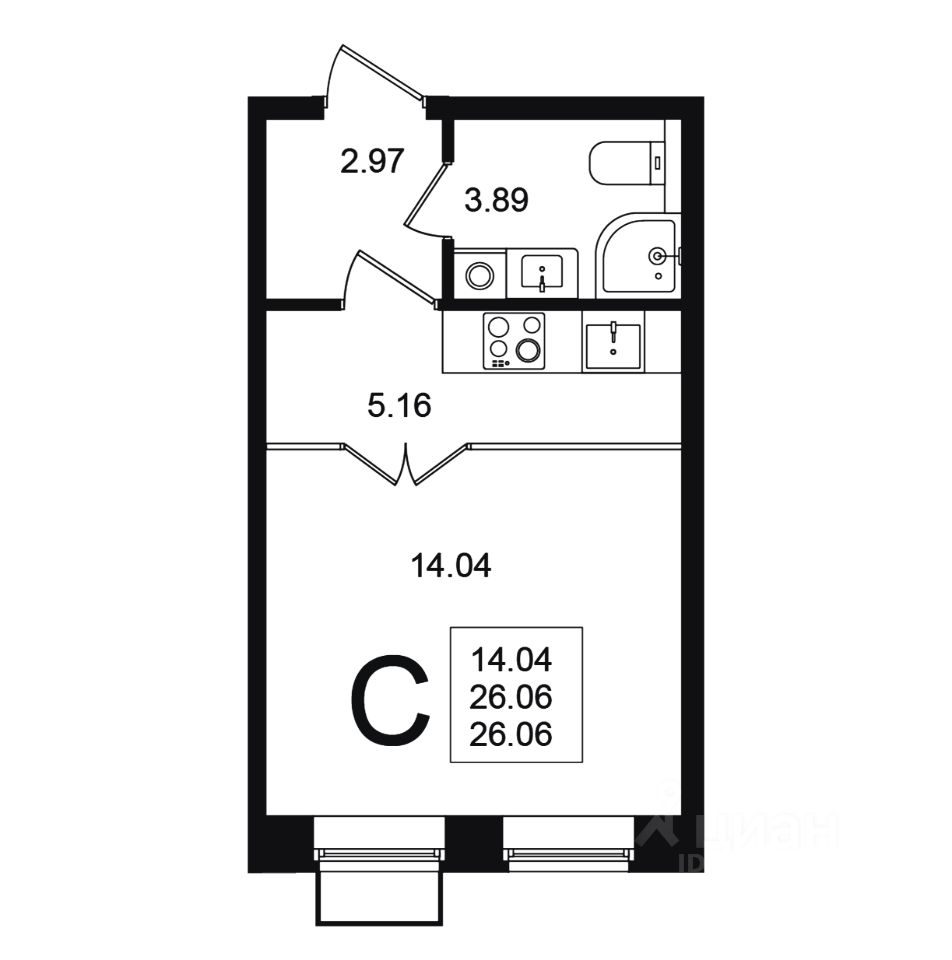 Продаётся студия в сданном доме (Корпус 9), срок сдачи: 2-кв. 2025, общей площадью 26.10 кв.м., на 4 этаже.
