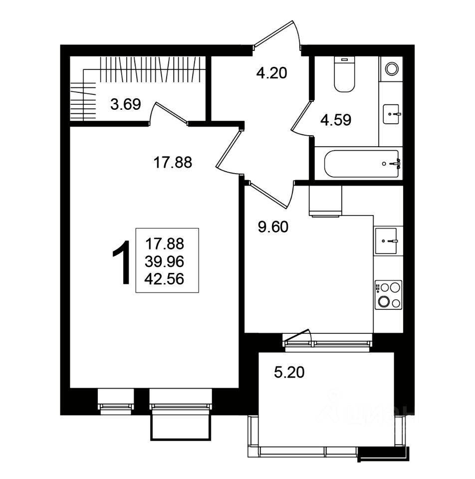 Продаётся 1-комнатная квартира в сданном доме (Корпус 9), срок сдачи: 2-кв. 2025, общей площадью 42.60 кв.м., на 2 этаже.