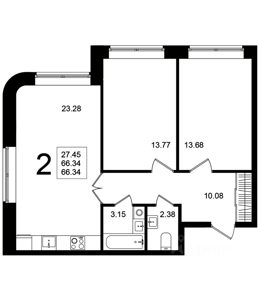 Продаётся 2-комнатная квартира в строящемся доме (Корпус 8), срок сдачи: 4-кв. 2025, общей площадью 66.34 кв.м., на 1 этаже.