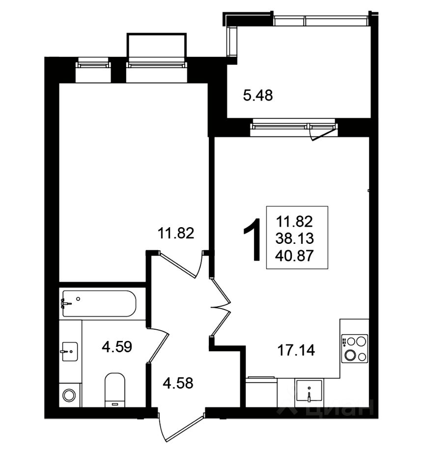 Продаётся 1-комнатная квартира в строящемся доме (Корпус 7), срок сдачи: 4-кв. 2025, общей площадью 40.87 кв.м., на 4 этаже.