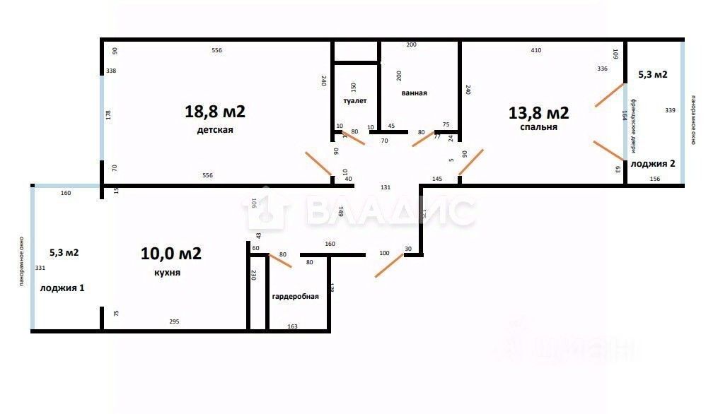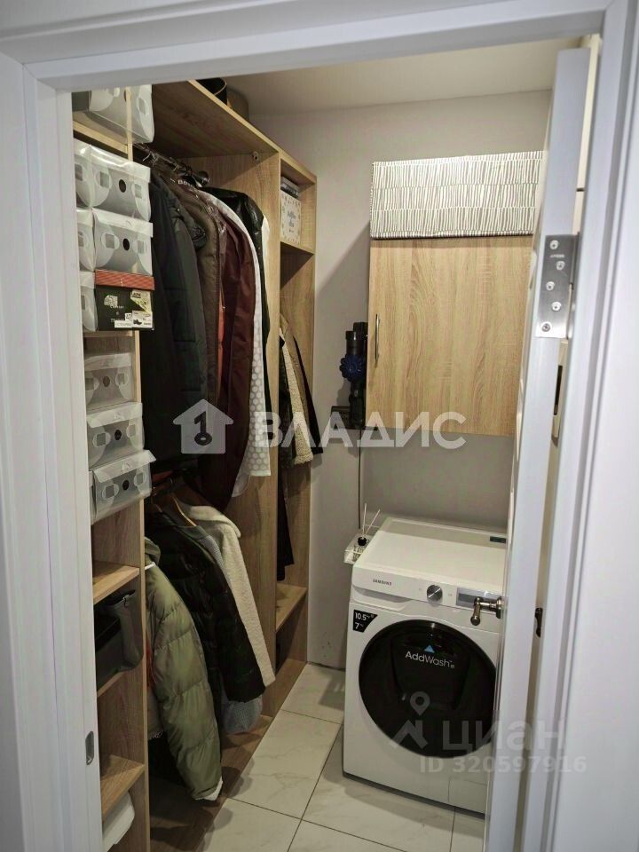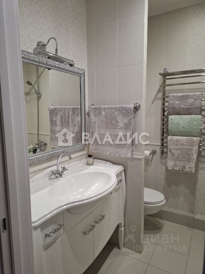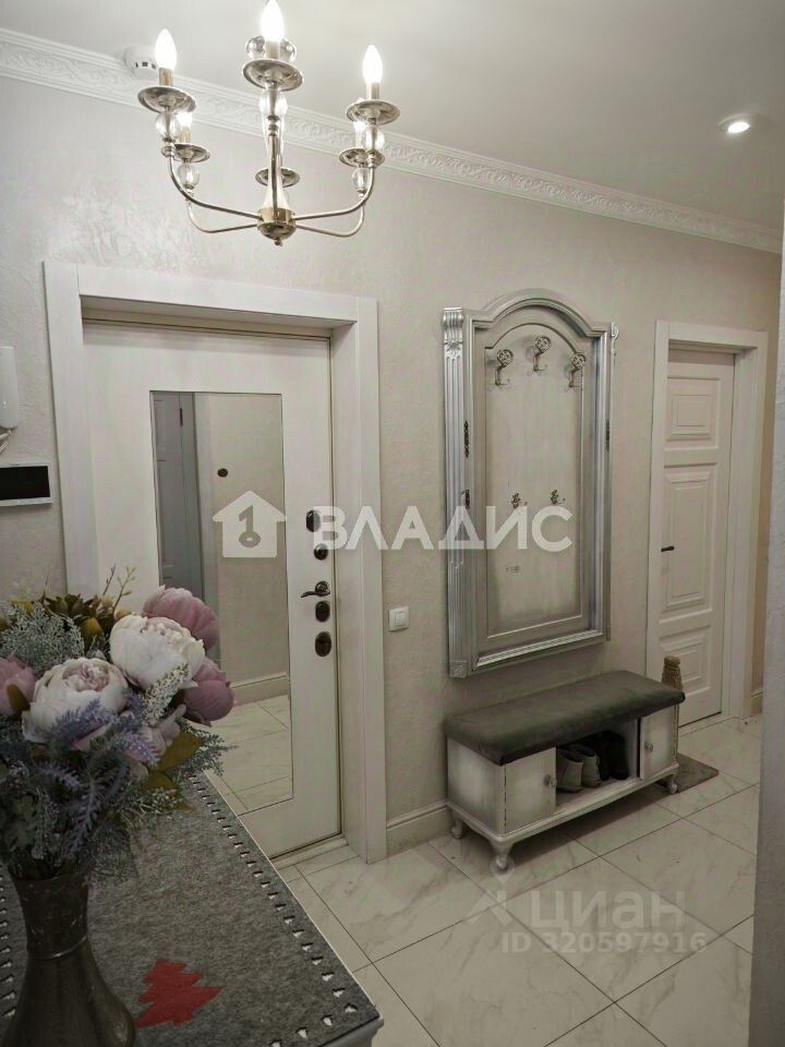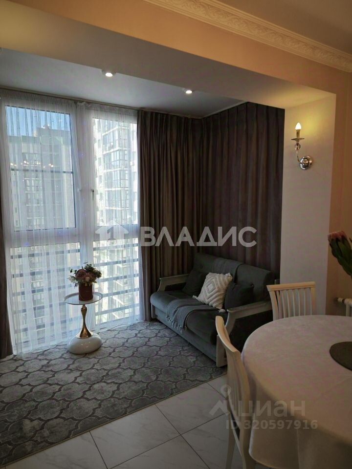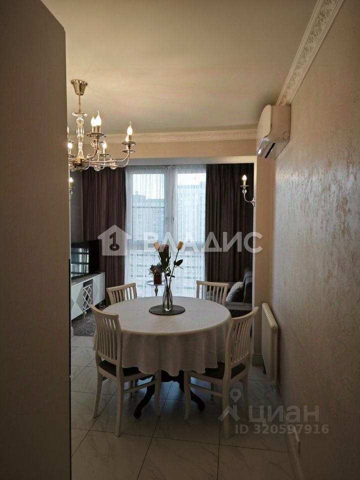 Квартира расположена на 17 этаже 20-этажного монолитного дома, построенного в 2014 году. Общая площадь — 64 кв. м, из которых 33,6 кв. м — жилая площадь, 10 кв. м — кухня. Высота потолков — 2,65 м. В квартире выполнен дизайнерский ремонт, комнаты изолированы, окна выходят на улицу.