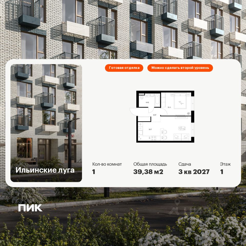 Продаётся 1-комн. квартира площадью 39,38 кв.м на 1 этаже 9 этажного дома (Корпус 4.1, Секция 4) проекта ПИК Ильинские луга. Светлый просторный подъезд на уровне земли, функциональная планировка, большие окна, c отделкой.