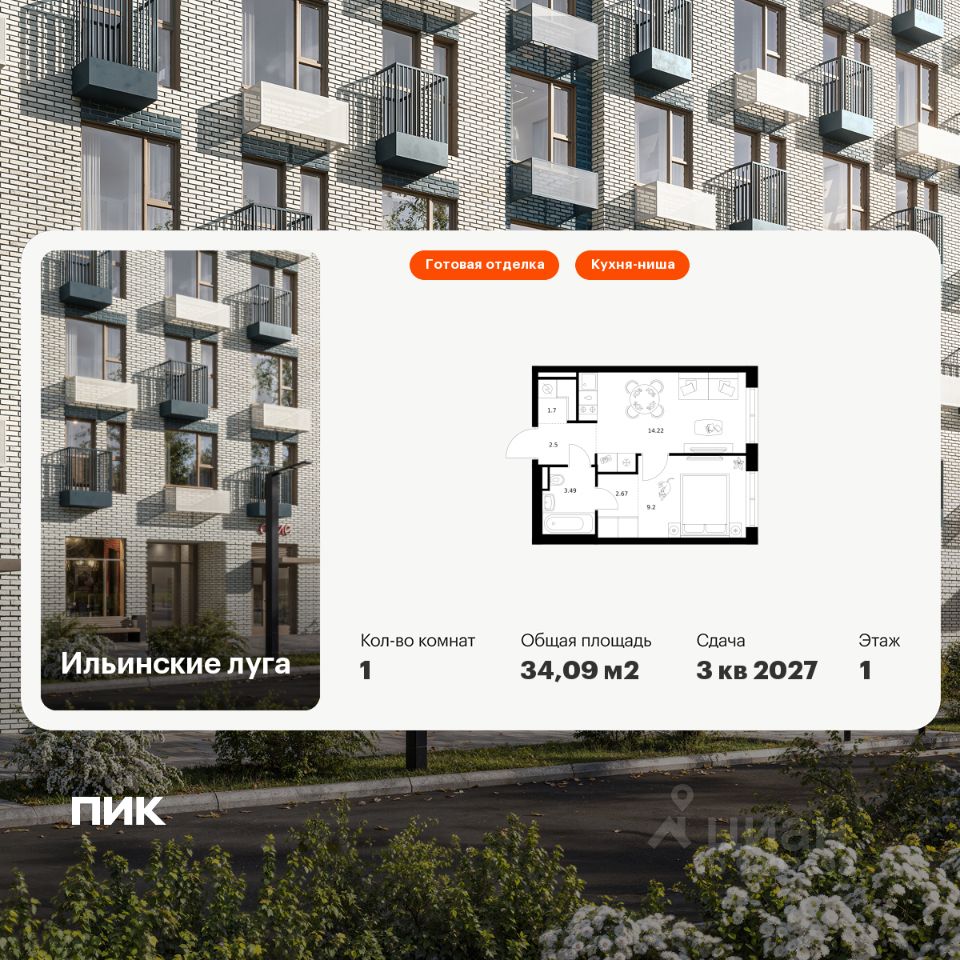 Продаётся 1-комн. квартира площадью 34,09 кв.м на 1 этаже 9 этажного дома (Корпус 4.1, Секция 5) проекта ПИК Ильинские луга. Светлый просторный подъезд на уровне земли, функциональная планировка, большие окна, c отделкой.