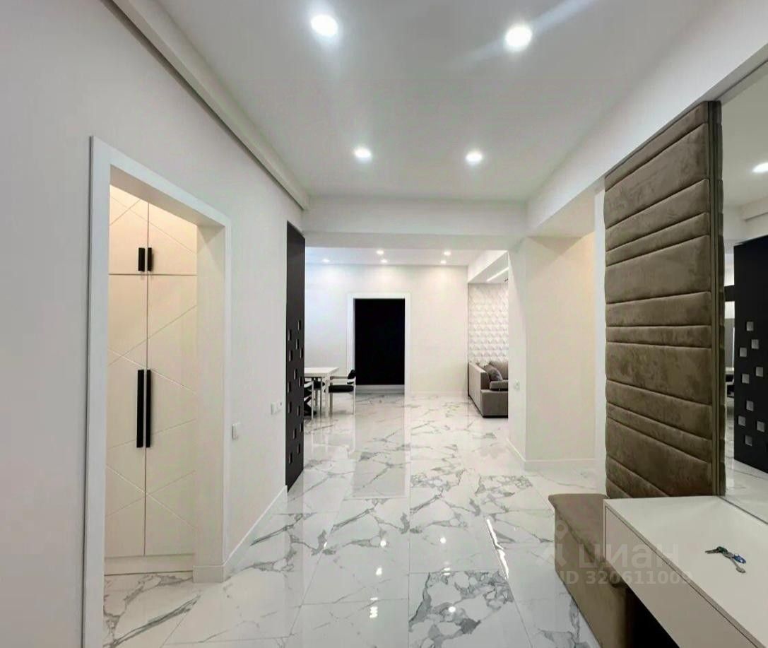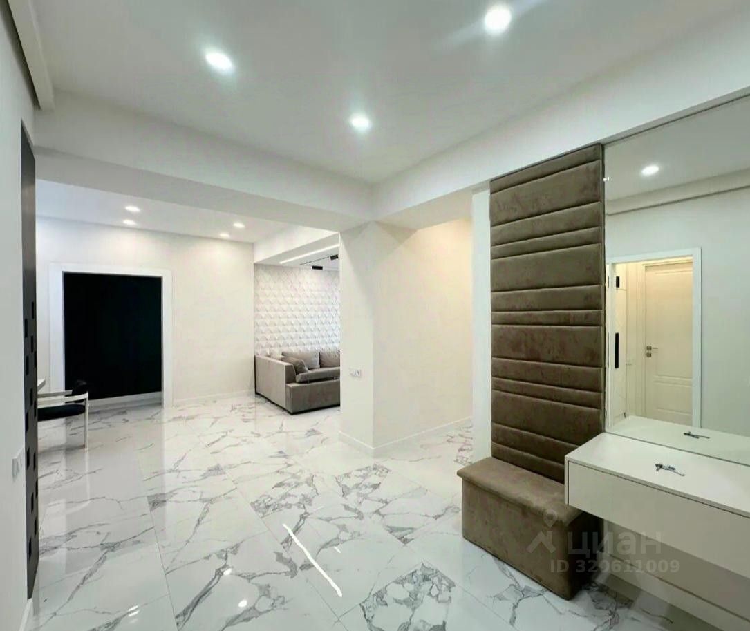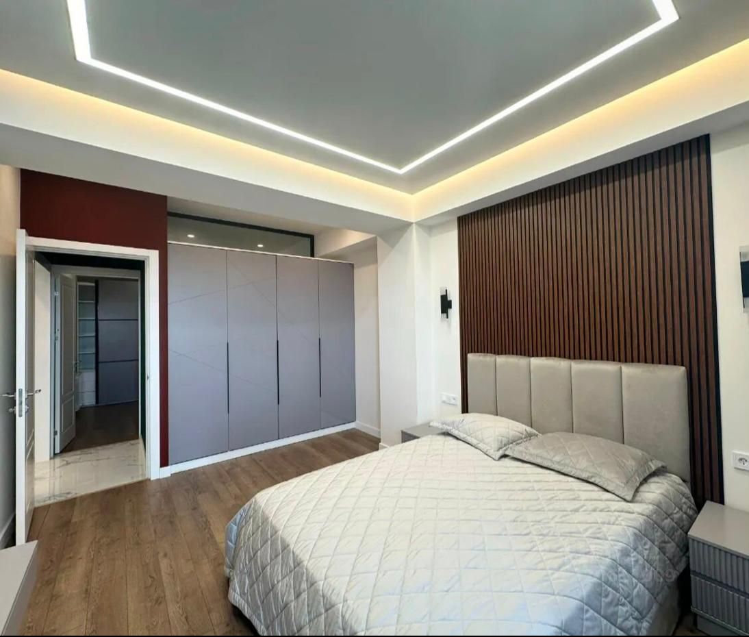С дорогущим ремонтом, мебелью и техникой. Планировка: кухня, гостиная-столовая, две спальни(в одной свой санузел), санузел общий и гардеробная комната. Техника абсолютно вся: Телевизор в гостиной, в спальнях, стиральная, сушильная и посудомоечная машины, кофемашина, робот пылесос, чайник, фен, утюг и так далее. Система умного дома. Вся инфраструктура благоустроенного района: В доме находятся продуктовый и хозяйственный магазины, аптека,