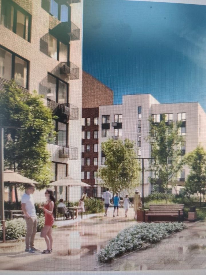 Проектом предусмотрены 14 корпусов средней этажности 6-9 этажей, а также муниципальная школа, один муниципальный и один частный детский сад, два наземных многоуровневых паркинга с кладовыми помещениями.
