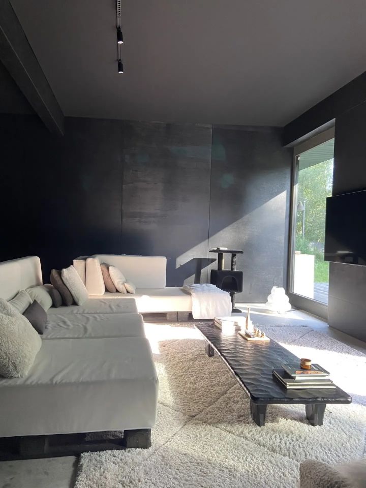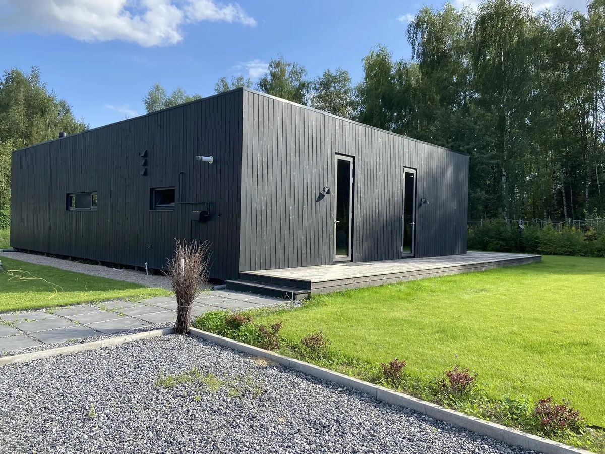 новый дом в нордическим стиле со стильным дизайном и панорамными окнами на лосиный остров. В доме есть зона СПА с русской баней с панорамным окном во всю стену на лес. В доме 2 спальни - в одной матрац 2*2 метра, в другой 1,8*2, но можно раздвинуть на две раздельные 0,9*2. Гостиная 45м2 со столом на 10-12 человек, ТВ 70 диагонали, 2 больших дивана и 2 кресла. Кухня с большим островом для готовки, посудомойкой и кофемашиной, духовкой, вытяжкой и холодильником. Сосед 1 - его не видно из дома, ТК все панорамные окна смотрят на лес. В доме 2 санузла.