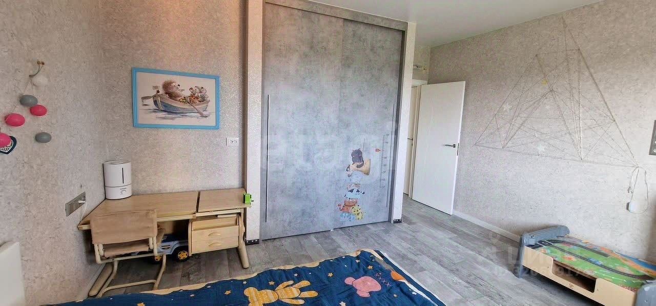 Двухкомнатная квартира площадью 83,5 м² расположена на 13 этаже 19-этажного монолитного дома бизнес-класса, построенного в 2016 году. Просторная планировка включает изолированные комнаты общей жилой площадью 41 м², кухню 15 м², совмещенный и раздельный санузлы, а также гардеробную. Высота потолков 2,7 м создает ощущение простора, а панорамные окна выходят во двор и на солнечную сторону, обеспечивая хорошую естественную освещенность. В квартире выполнен качественный дизайнерский ремонт с использованием современных материалов, установлена кухня со встроенной техникой, включая холодильник, посудомоечную и стиральную машины, водонагреватель. Дополнительный комфорт обеспечивает система теплого пола.