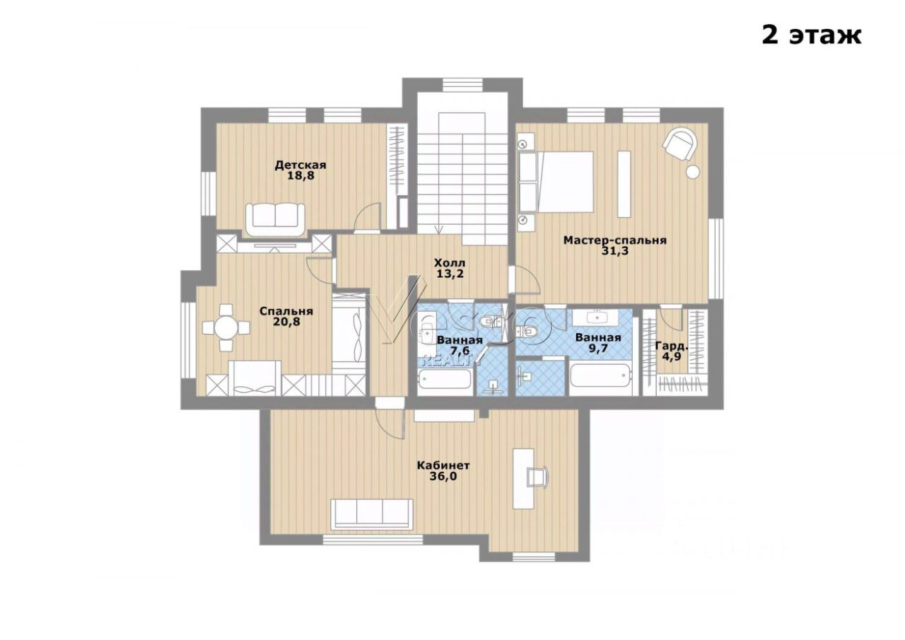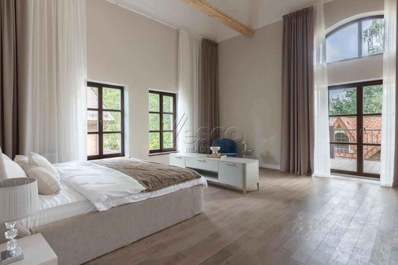 Высота потолка: 1 и 2 уровней 3,4 м, главная спальня 5,5 м, мансарда 2.9 м.