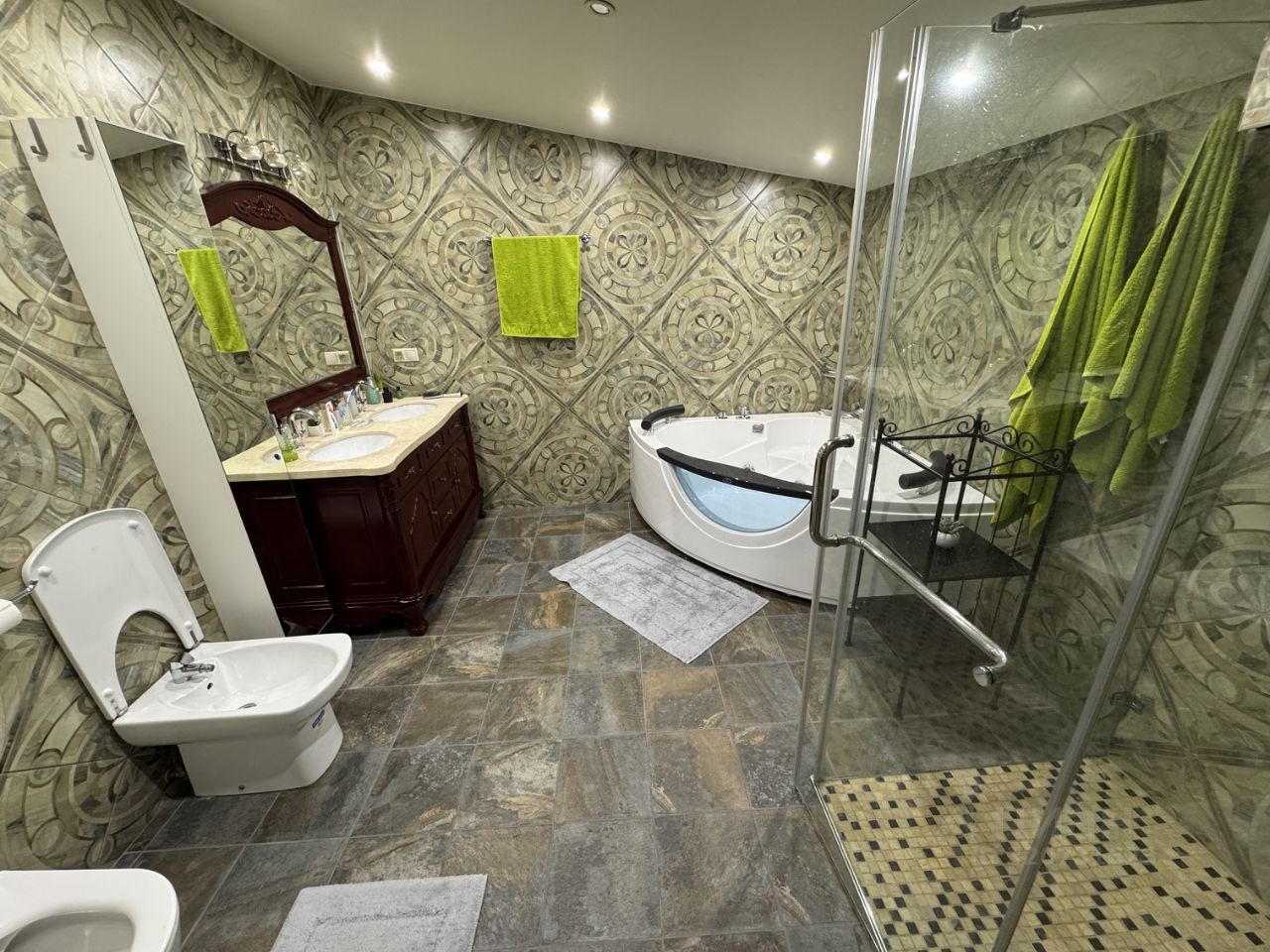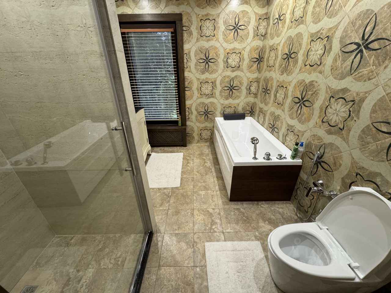с. Николо-Урюпино, дом Двухэтажный коттедж общей площадью 400 кв.м. из кирпича и клеенного бруса, 1 эт: прихожая с гардеробной, выход в гараж на 2 авто, кухня столовая с выходом на патио, кабинет(или спальня), с/у(гостевой), СПА блок: сауна, комната отдыха, купель, душевая бойлерная. 2 эт: гостиная с камином и с выходом на обзорную лоджию, хоз. спальня с гардеробной и с/у+ванна+душ, спальня с гардеробной и с/у+душ, спальня с гардеробной, спальня с гардеробной с с/у+ванна+душ, на участке: газон, навес для авто.