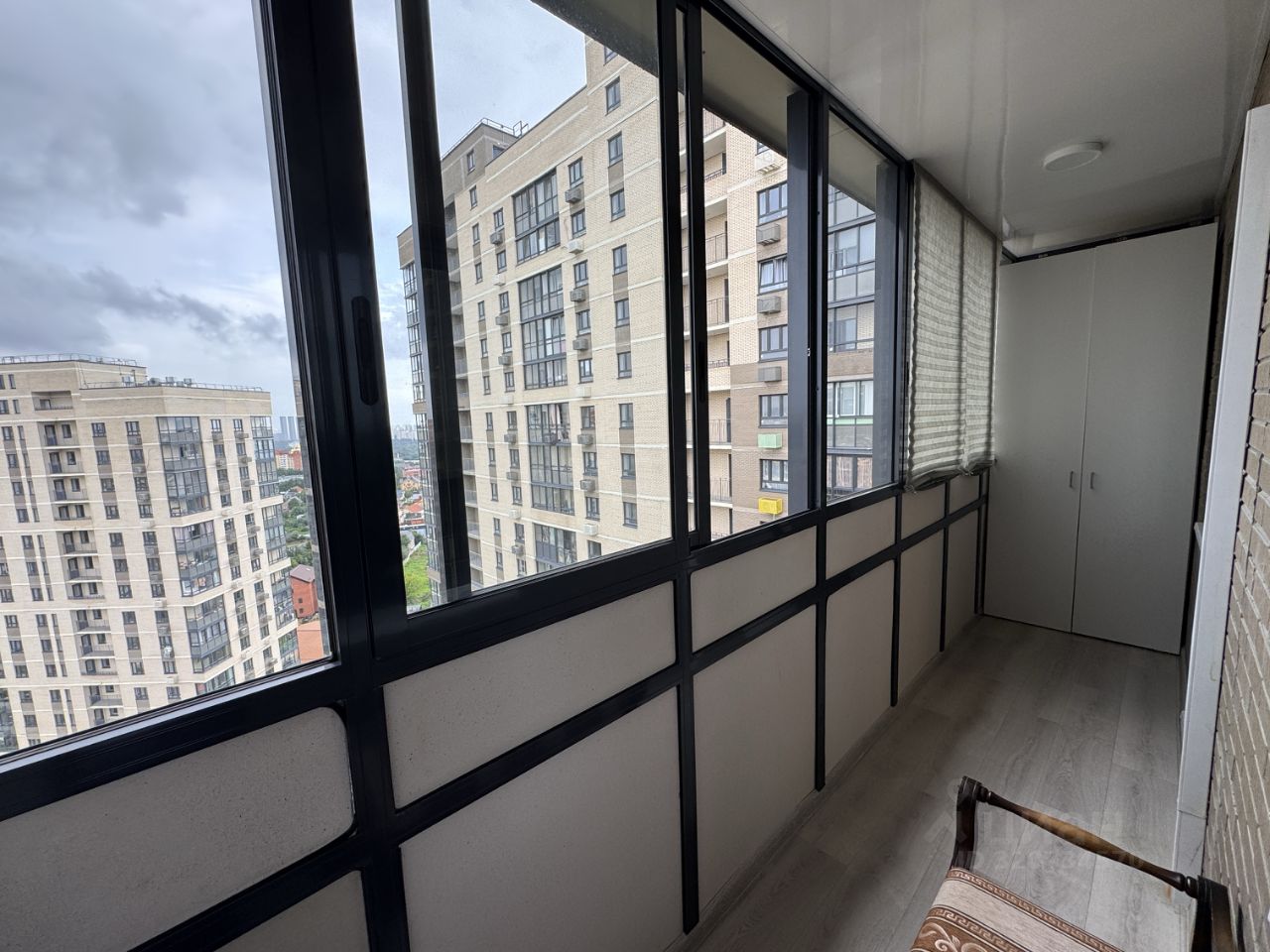 ВНИМАНИЕ! Продается солнечная видовая квартира-студия общей площадью 27,9 на 20 этаже современного монолитного жилого комплекса комфорт-класса! Студия находится на самом высоком этаже. Вас больше не побеспокоит шум соседей сверху — над квартирой лишь тихий технический этаж. Здесь всегда тишина, воздух чище, меньше шума, просторный вид на город и особое ощущение уюта и уединённости. Дружелюбные и добрые соседи на этаже - Вы всегда можете обратиться к ним за помощью. Квартира очень светлая, чистая и уютная, приятная аура - Вы это почувствуете, когда зайдете. В квартире сделан ремонт в светлых тонах! Пространство грамотно зонировано, всё продумано до мелочей. Есть кондиционер, просторная лоджия, совмещенный с/у.