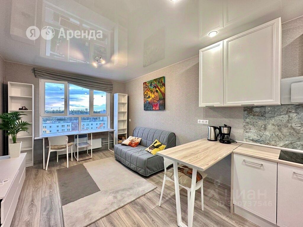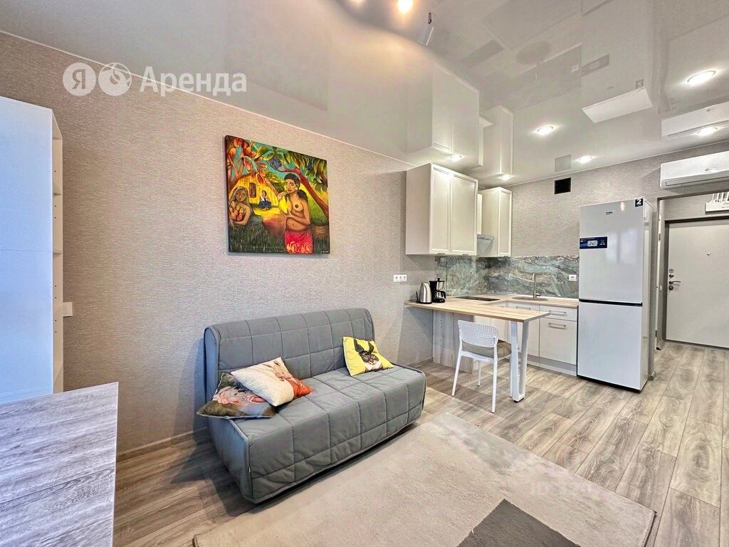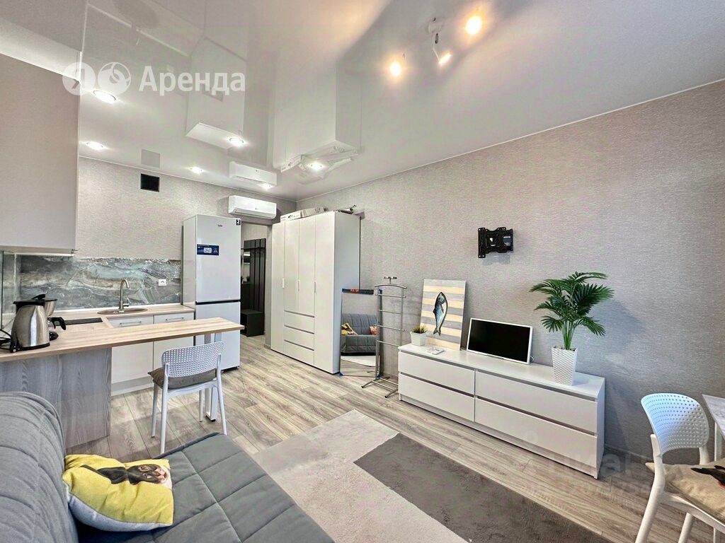 Сдаётся студия площадью 24 кв.м. с евроремонтом на 8 этаже в 8-этажном доме на срок от 11 месяцев. Из техники есть: Телевизор Стиральная машина Холодильник Кондиционер
