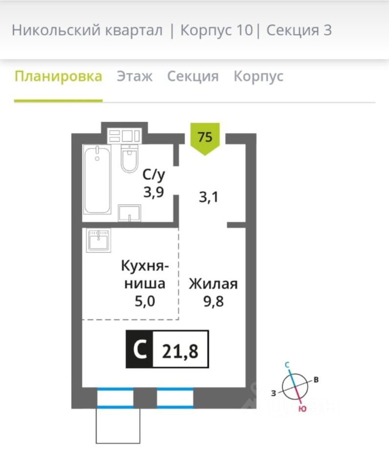 Продаю студию 21,8 кв.м., расположенную на 2м этаже. Право собственности на основании ДДУ 1 собственник.