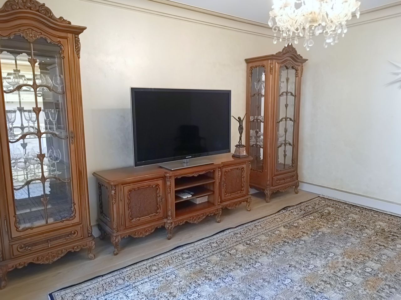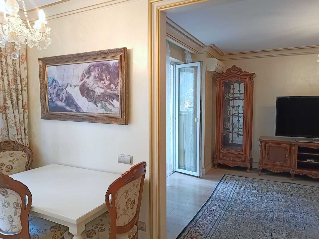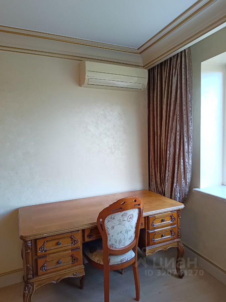 Спальня 15,7 м с большой двуспальной кроватью, вместительным шкафом, рабочим местом и кондиционером. В гостиной большой телевизор, кондиционер, 2 шкафа-витрины и тумба под тв из массива дерева (мебель из гостиной можно вывезти, при необходимости), окна в пол. Можно привезти свою мебель. Из гостиной выход на остекленную лоджию с теплым полом и освещением. Все окна выходят на восточную сторону.
