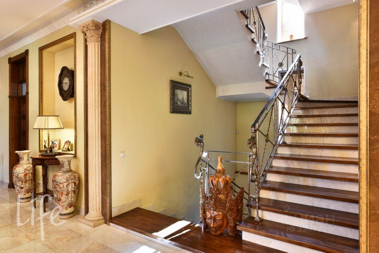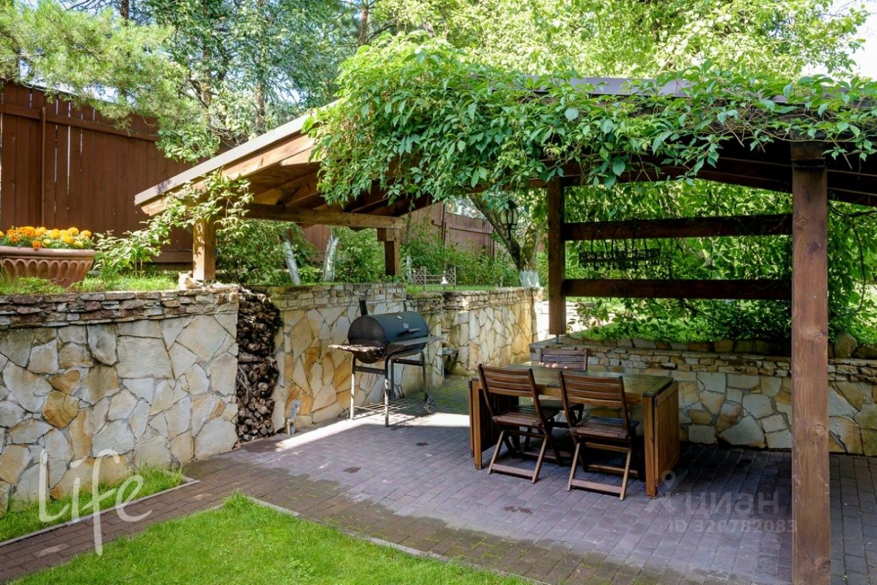 На участке выполнен ландшафтный дизайн, водопад, построена беседка. Есть дом для охраны, он совмещен с въездными воротами. Окружение достойное, соседи отстроились, живут постоянно.