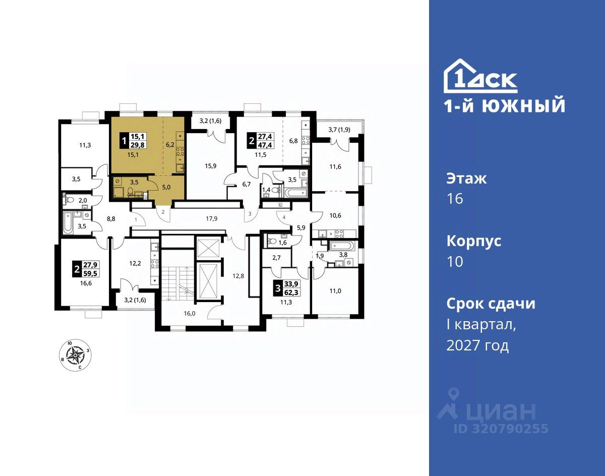 продам 1-к, Первый Южный ЖК, 107 974 480 ₽
