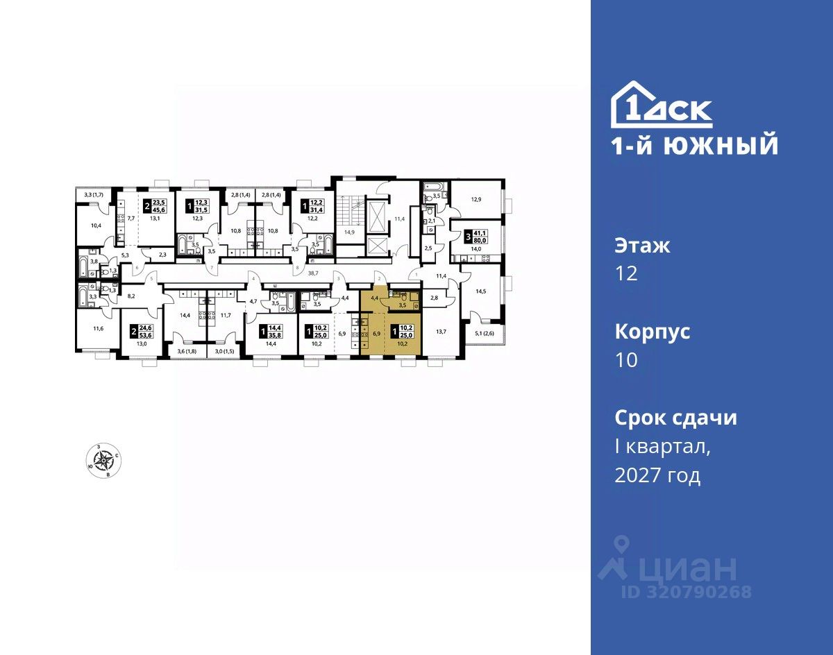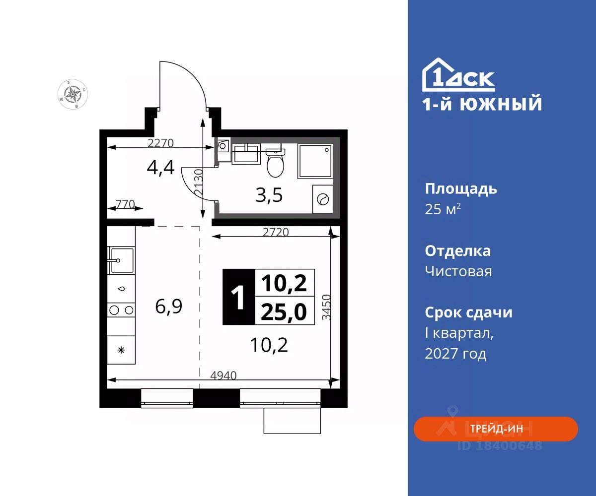 продам 1-к, Первый Южный ЖК, 106 626 300 ₽