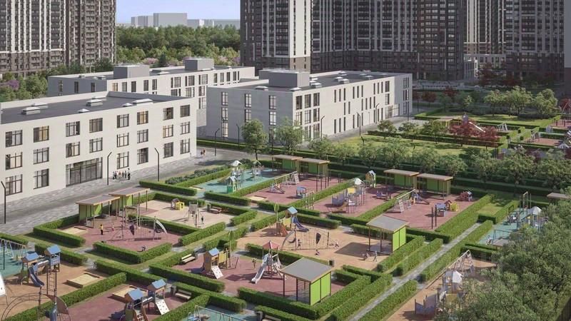 Внутренняя инфраструктура: Красивые продуманные подъезды - еще одно преимущество проекта 1-й Южный. Вход в сквозные подъезды есть и с улицы, и со двора. Благодаря сплошному остеклению в них всегда светло и уютно. Подъезды расположены на уровне земли, поэтому и молодым родителям с коляской, и жильцам с ограниченными возможностями вход и выход неудобств не доставят. В помещении предусмотрено место под стойку ресепшен с выводом инженерных сетей. Если жильцы решат на общем собрании, что необходим охранник или консьерж, организовать для них рабочее место можно быстро и с минимальными затратами. В подъездах предусмотрены уборные для детей и взрослых. Колясочные в каждом подъезде позволяют поддерживать порядок и чистоту на этажах. На случай прогулки с четвероногим питомцем в непогоду в подъездах устроены лапомойки. Во дворах и на общественных территориях 1-ого Южного столько всего интересного для юных обитателей. Собственные 3 детских сада и 2 больших школы буквально ''под окнами'' Изюминка проекта - пешеходный бульвар-дендрарий, он идеален для семейных прогулок. По сторонам прогулочной зоны разместили