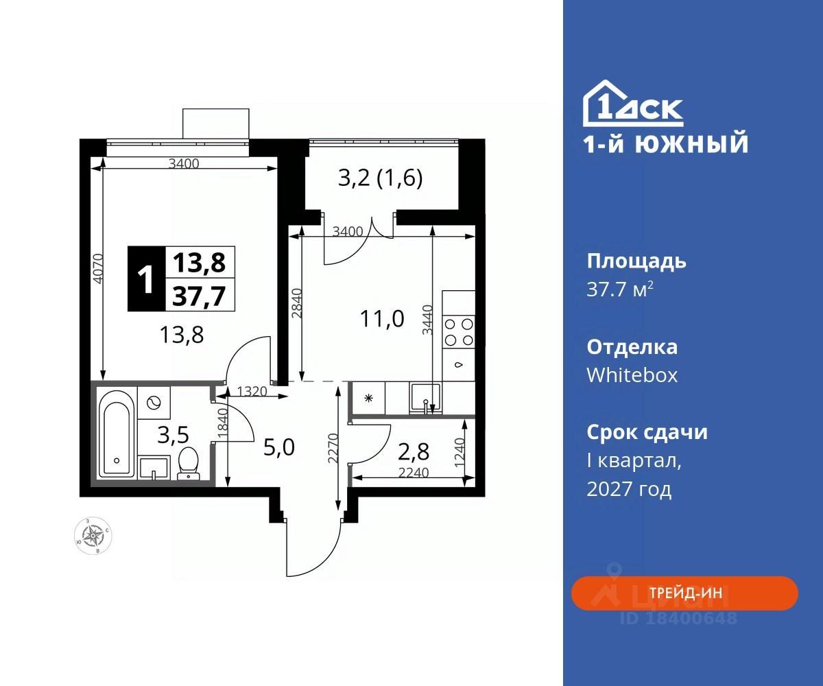 продам 1-к, Первый Южный ЖК, 108 812 300 ₽