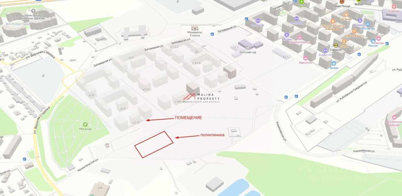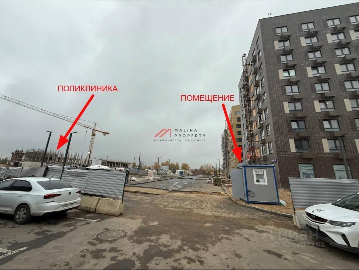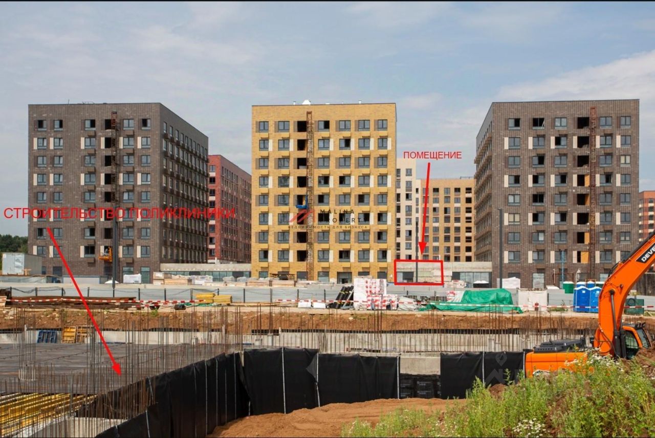 Помещение располагается на первой линии жилого комплекса, на въезде в огромный жилой массив, рядом остановка общественного транспорта и пешеходный переход к единственной на весь район поликлинике на 400 посещений в день. Интенсивный автомобильный и пешеходный трафик вдоль помещения.